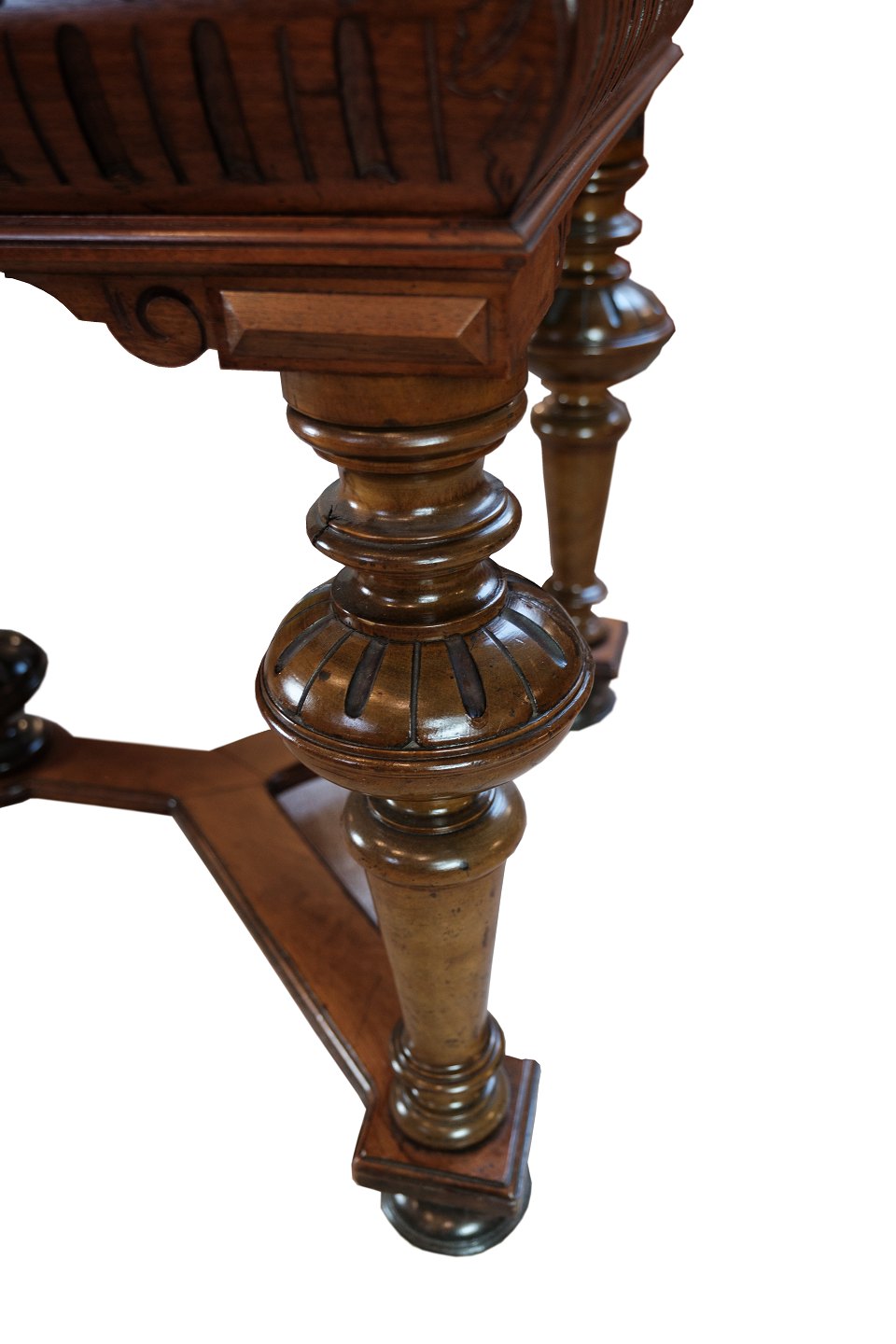 Walnut sideboard / desk from Denmark decorated with carvings from the year 1880s.