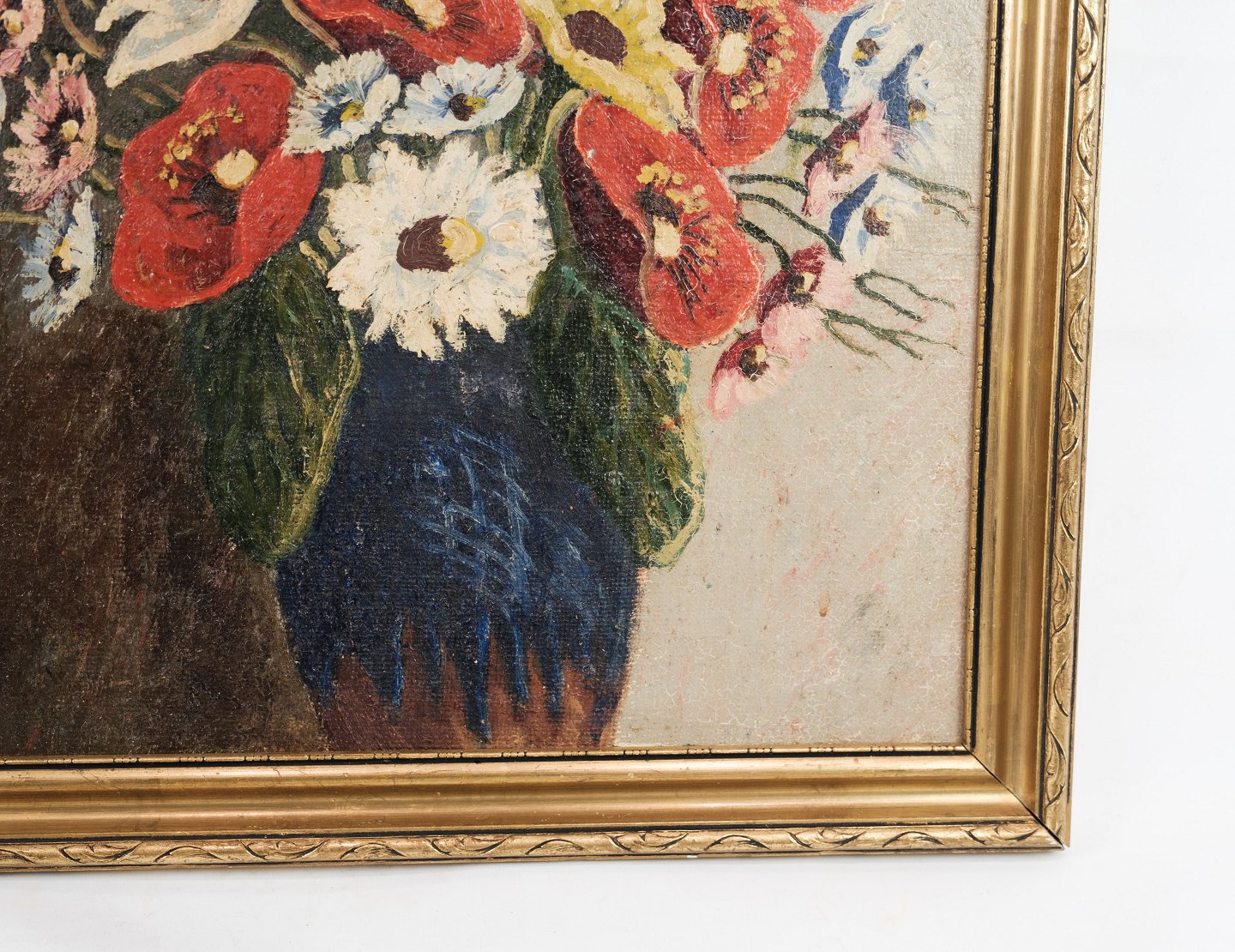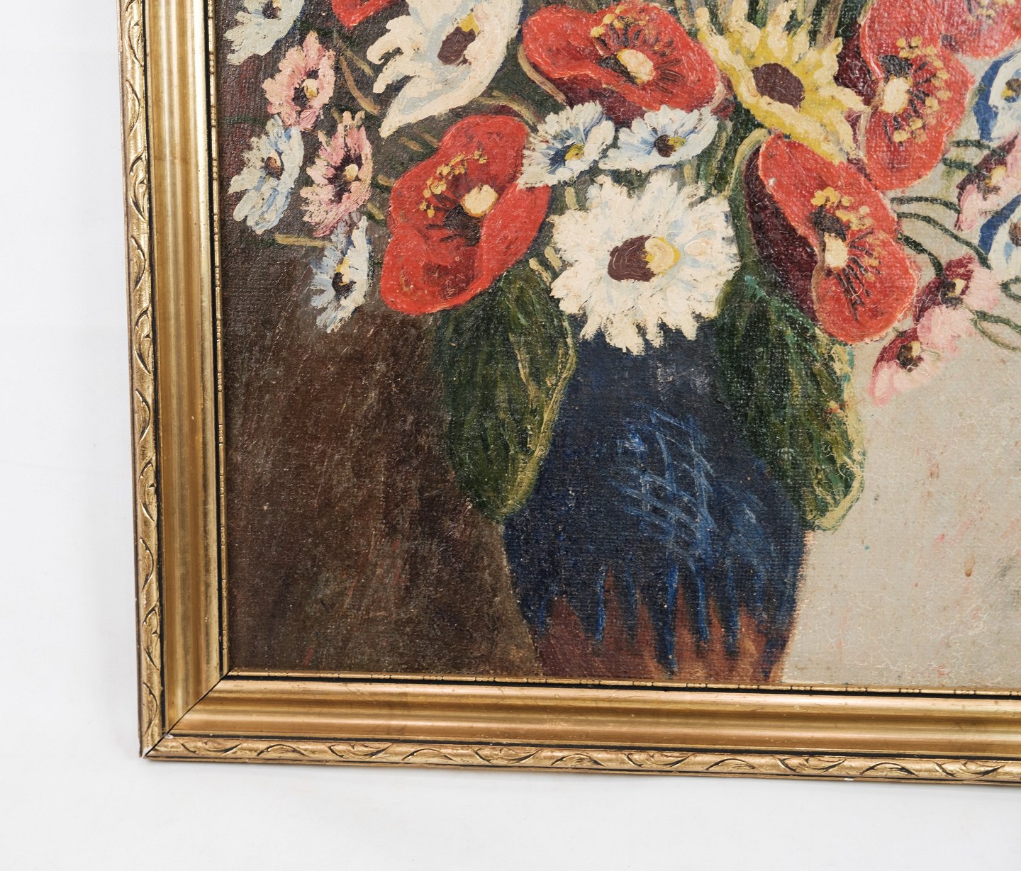 Blomster oliemaleri malet på træ plade fra år 1940'erne. Står i meget fin brugt stand.
