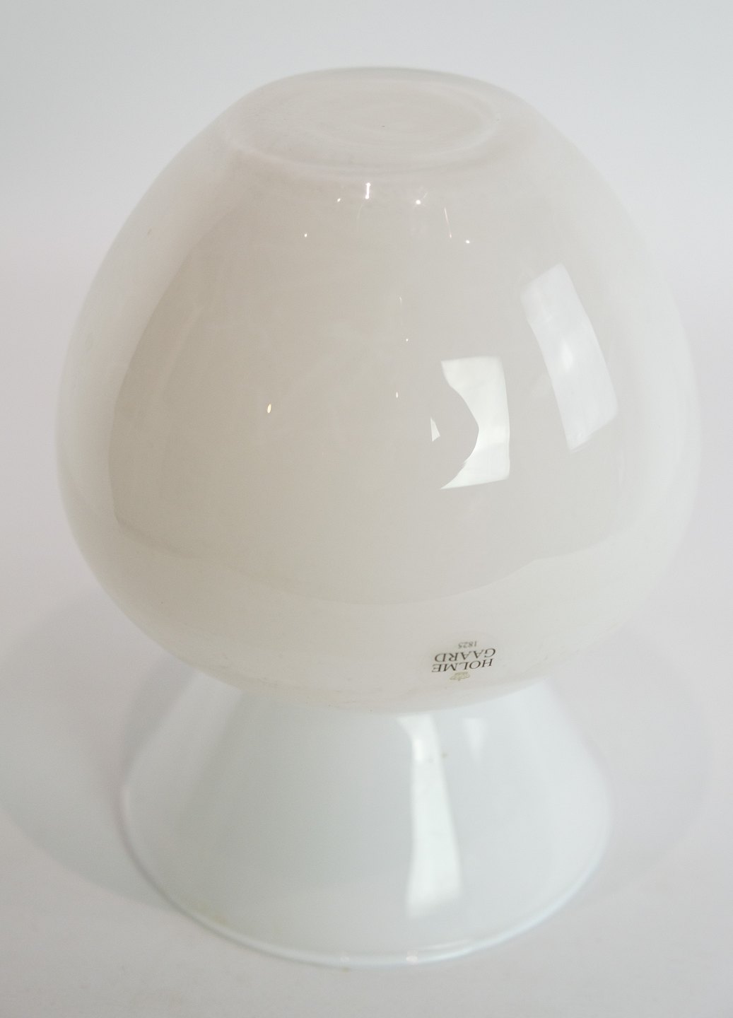 Hvid vase i glas produceret af Holmegaard fra omrking 1970'erne. Står i god stand uden skader.