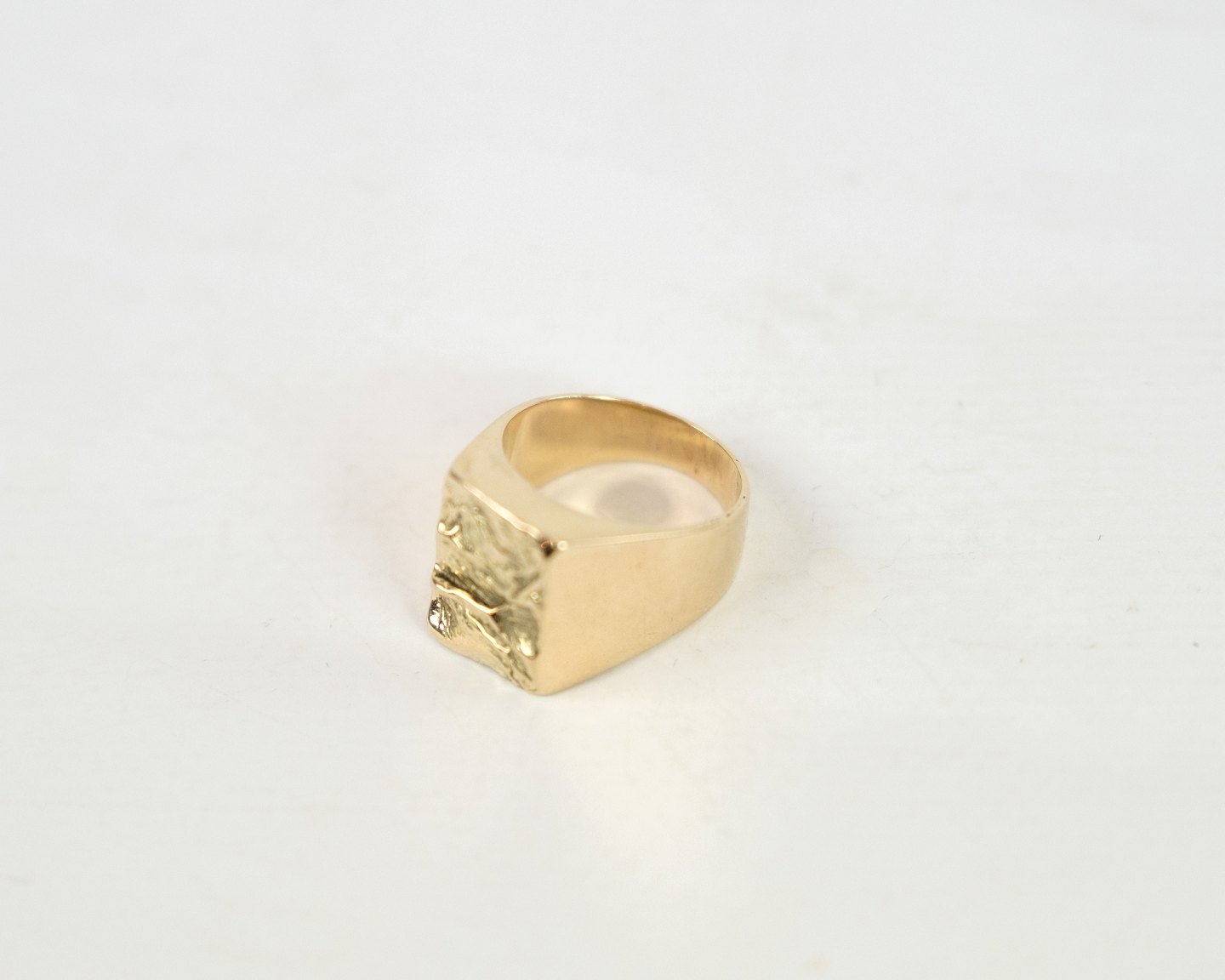 Sold14 carat handmade gold ring stamped H.Mann 585. Thick smooth ring rail with a perforated surface.