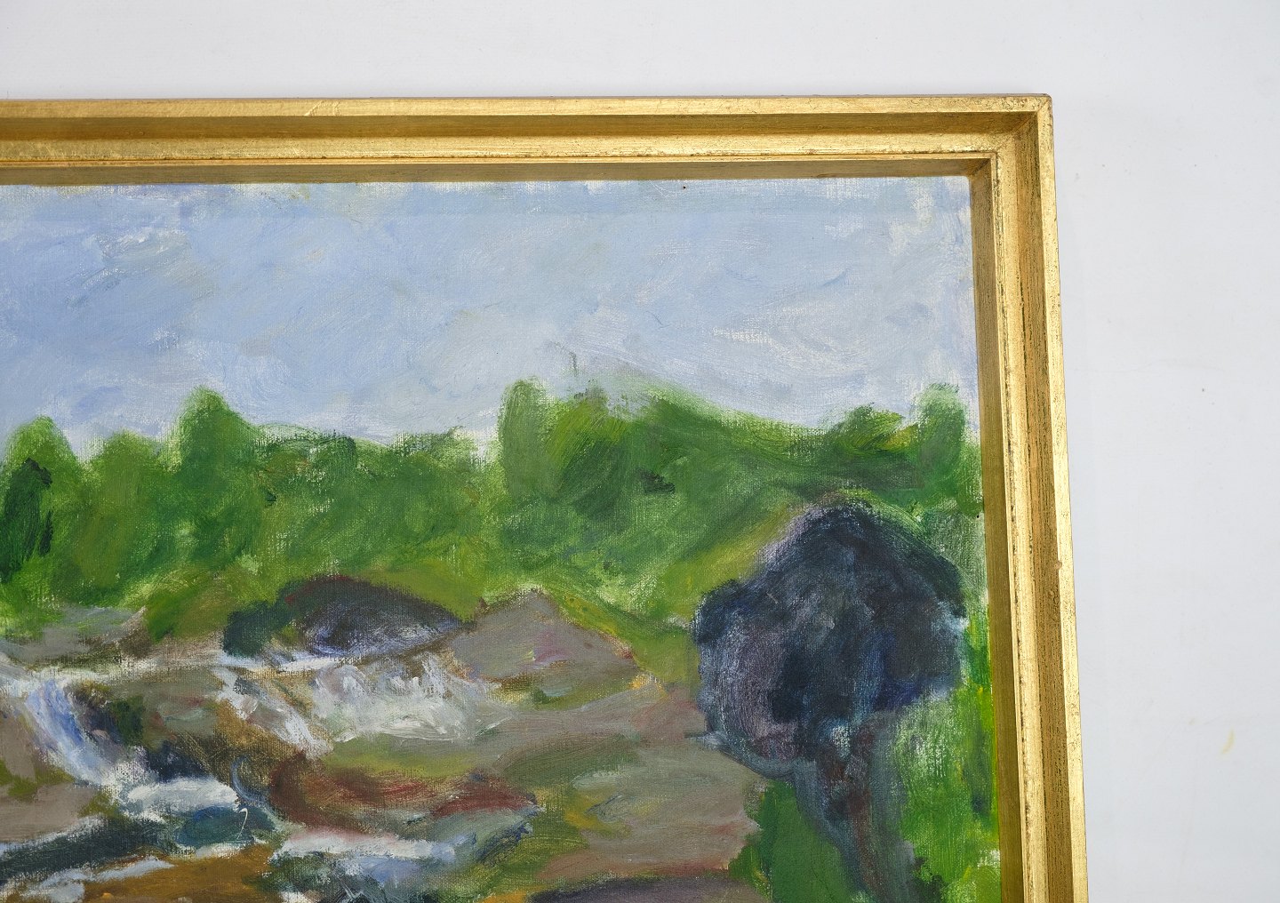 Oil painting painted on canvas with green and brown shades by Sixten Wiklund (1907-1986) from around the 1950s. Stands undamaged with original gold-plated frame.