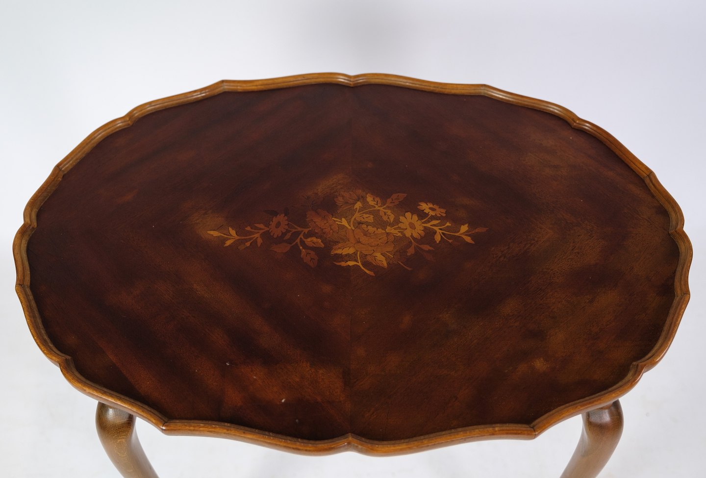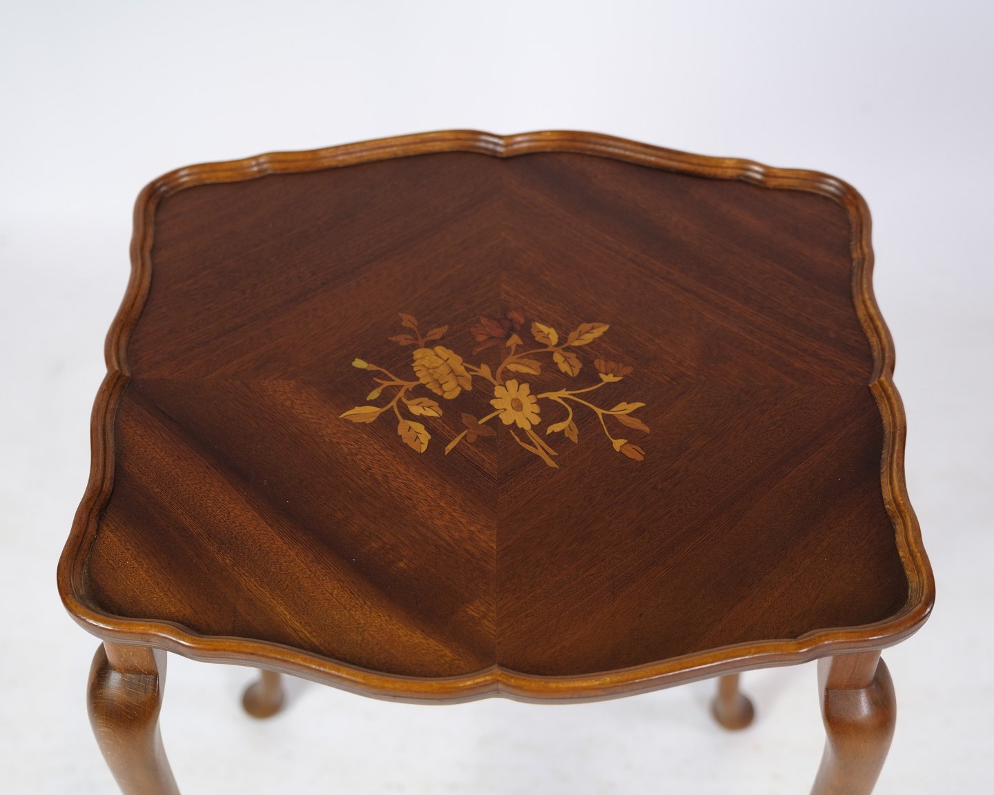 Sæt af 3 indskudsborde i rosentræ med intarsia i nyrokoko stil fra omkring 1960'erne.