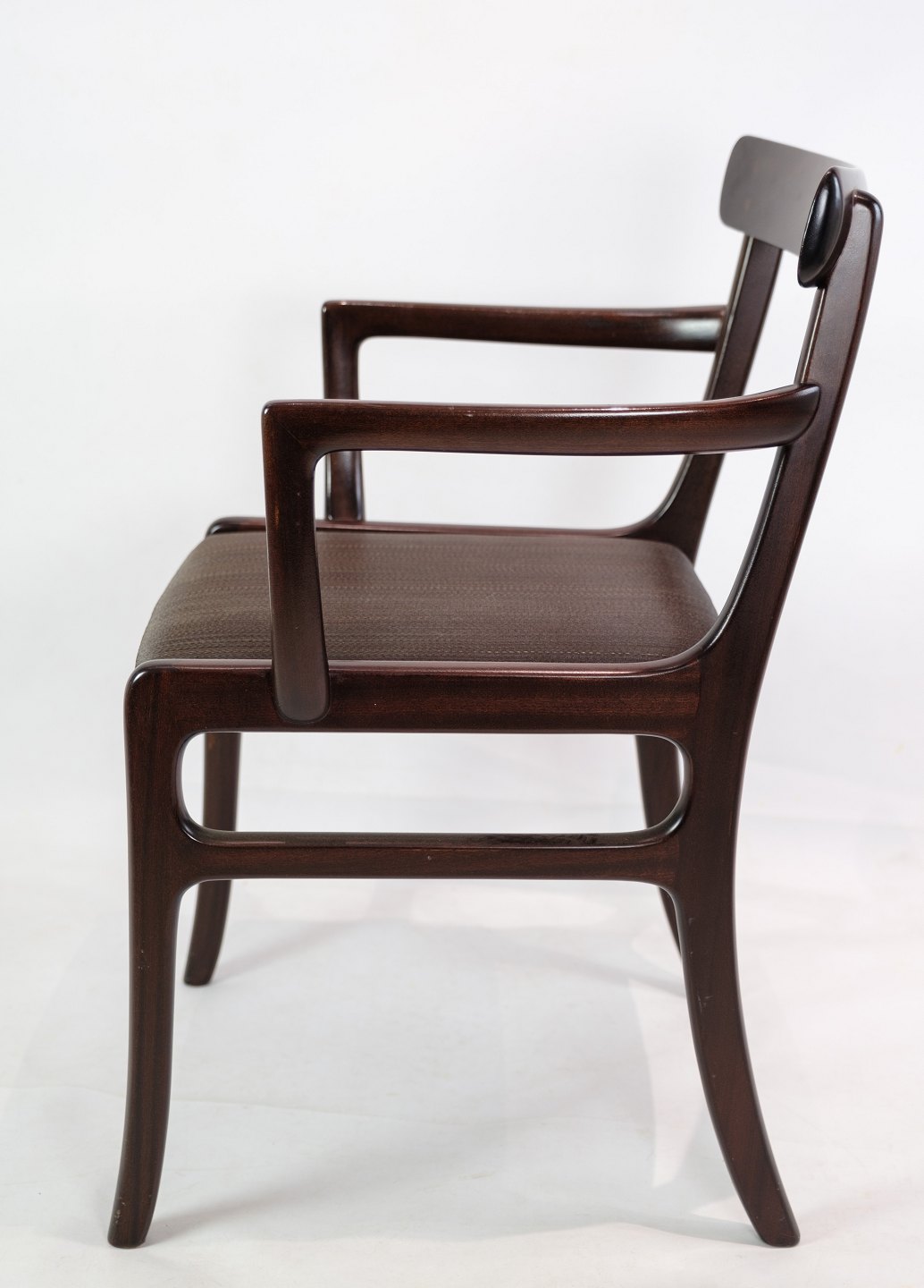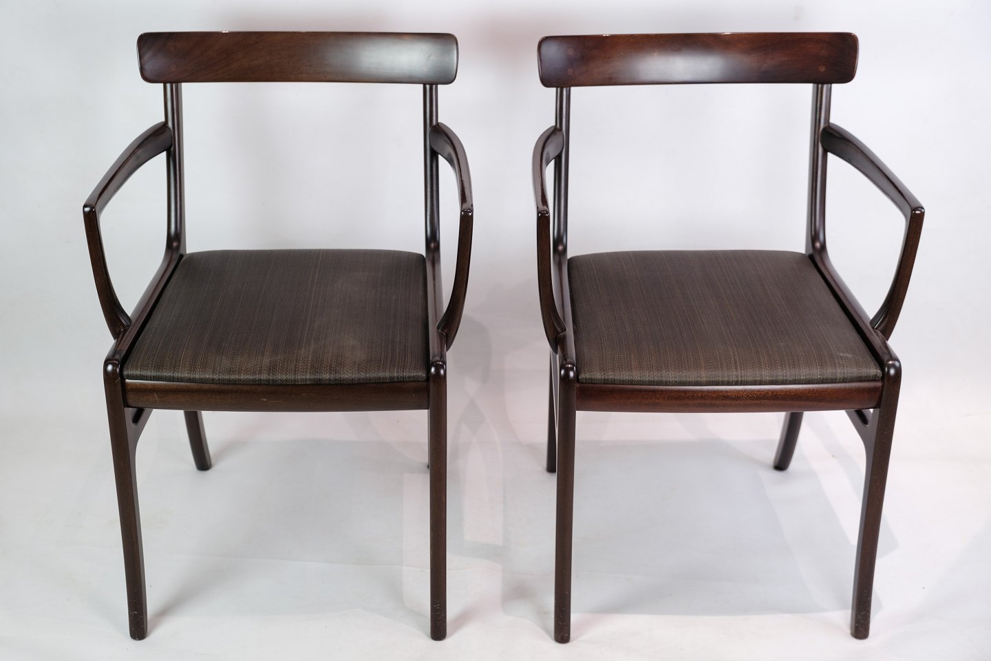 Set of two mahogany Rungstedlund arm chairs by Ole Wancher for Poul Jeppesen's Furniture Factory. Stands in very fine vintage condition.