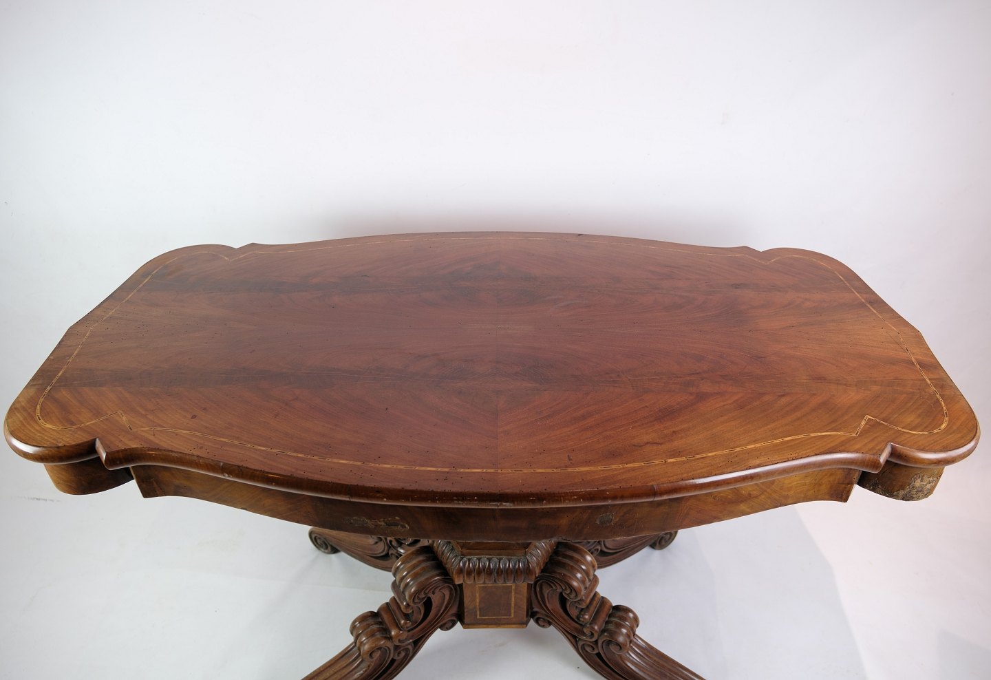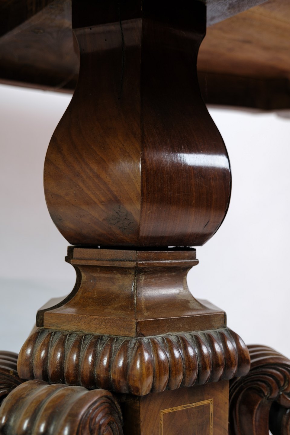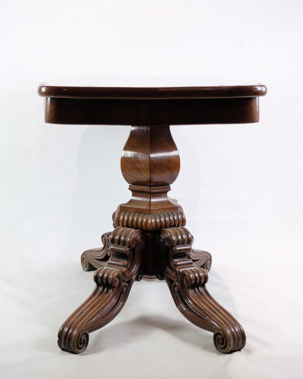 Søjle bord i senempire, med rige udskæringer i mahogni fra omkring 1840'erne.