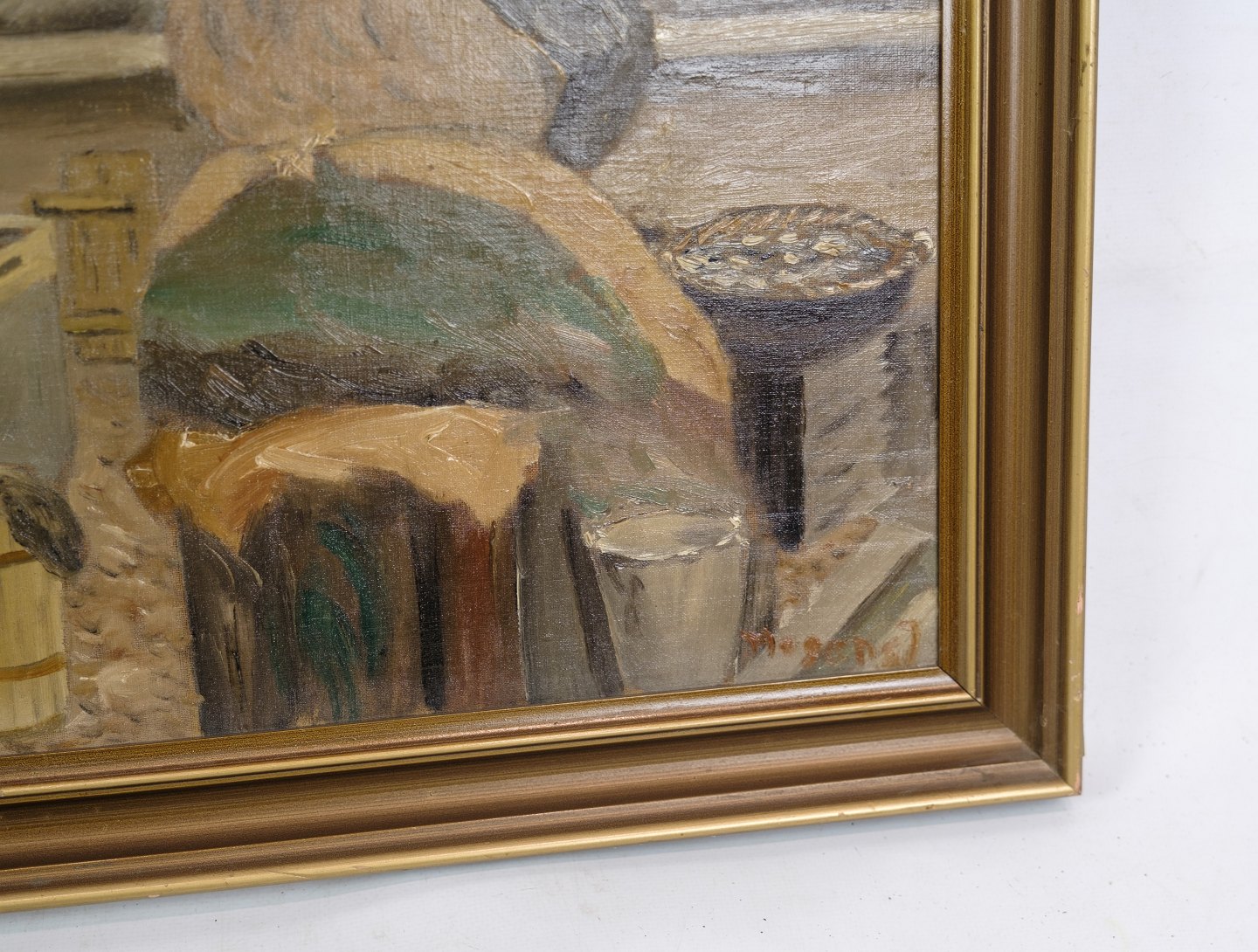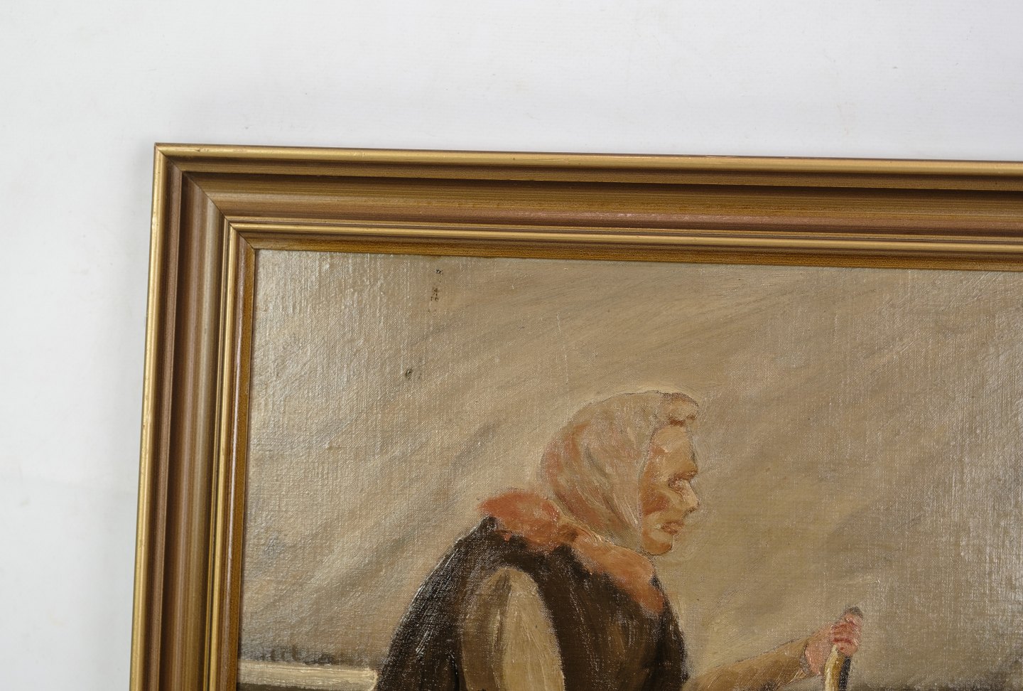 Oliemaleri malet på træplade med motiv af fiske koner fra gammelstrand i København fra omkring år 1930'erne. Signeret
