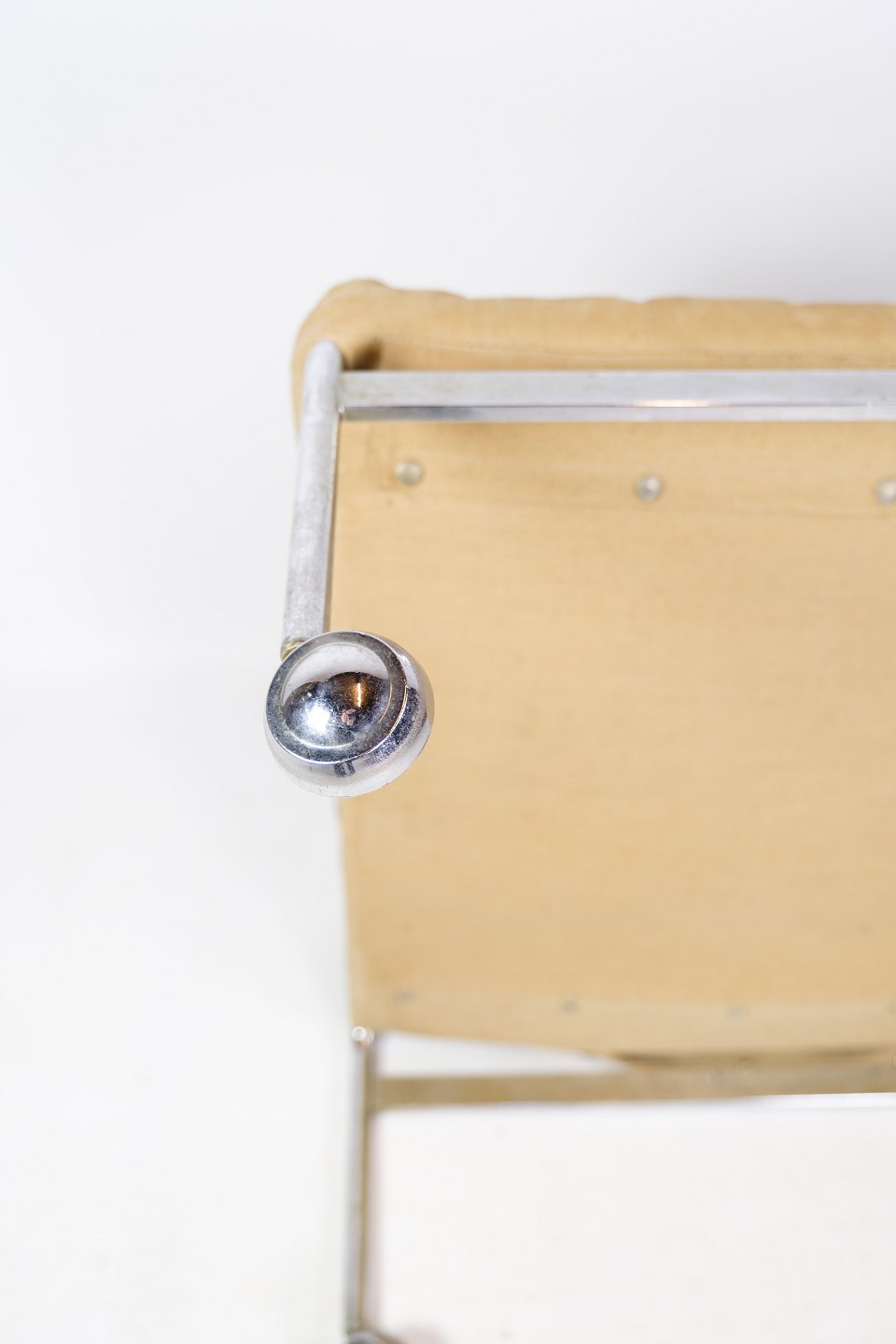 Skammel, model Karin, designet af Bruno Mathsson (1907-1988) fra omkring 1960'erne. Skamlen er betrukket med lyst knapsyet hynder af stof. Fremstår med brugsspor.