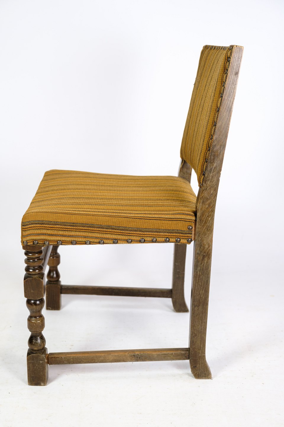 Set of 4 dining table chairs in oak with striped fabric from around the 1930s