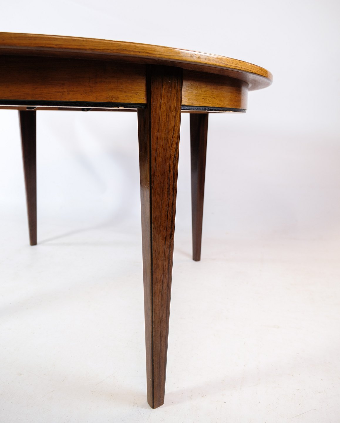 Dining table, designed by Omann Junior in rosewood from around the 1960s. If desired, we can color the additional plates the same color in our professional workshop.