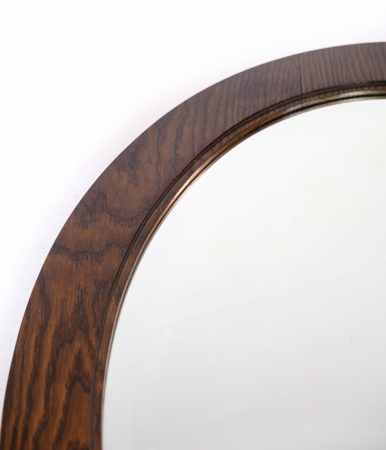 Antikt ovalt spejl i mørk bejdset egetræ fra omkring år 1910