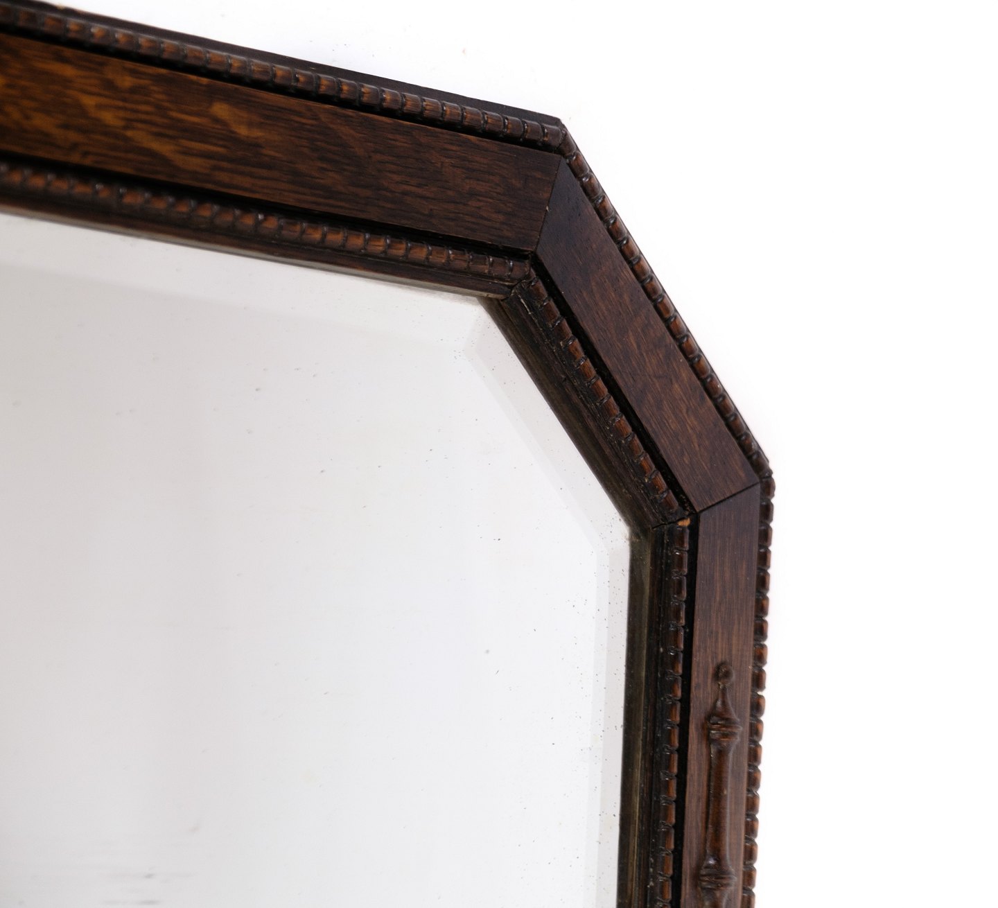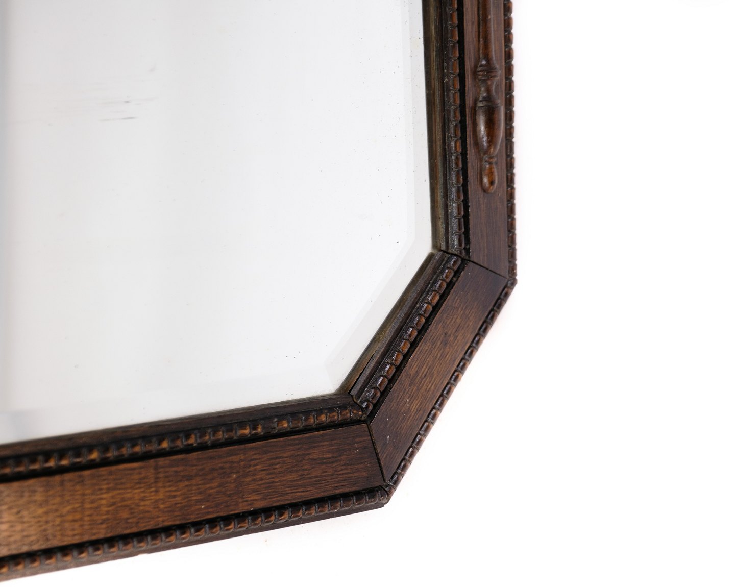 SoldAntique mirror in oak wood decorated with decorations from around the year 1890.