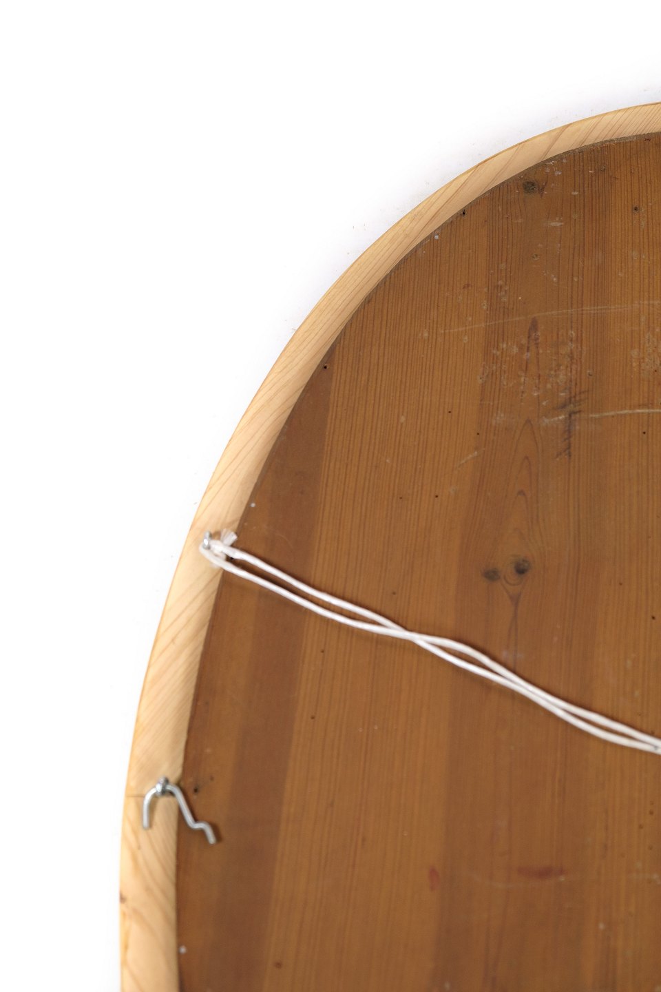 SolgtOvalt spejl i træsorten lyst fyrretræ fra omkring år 1920'erne