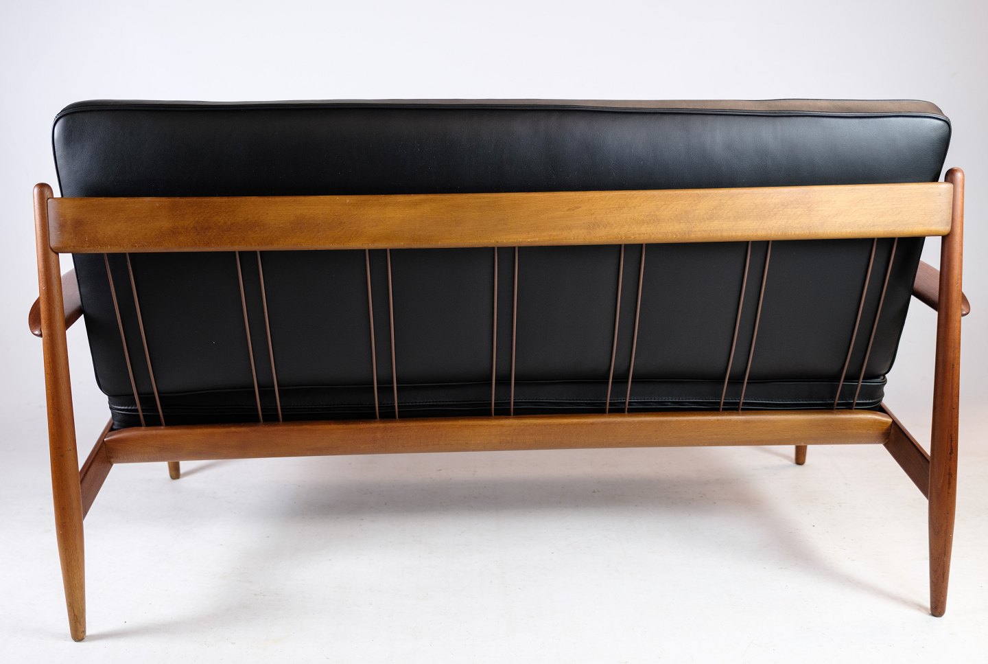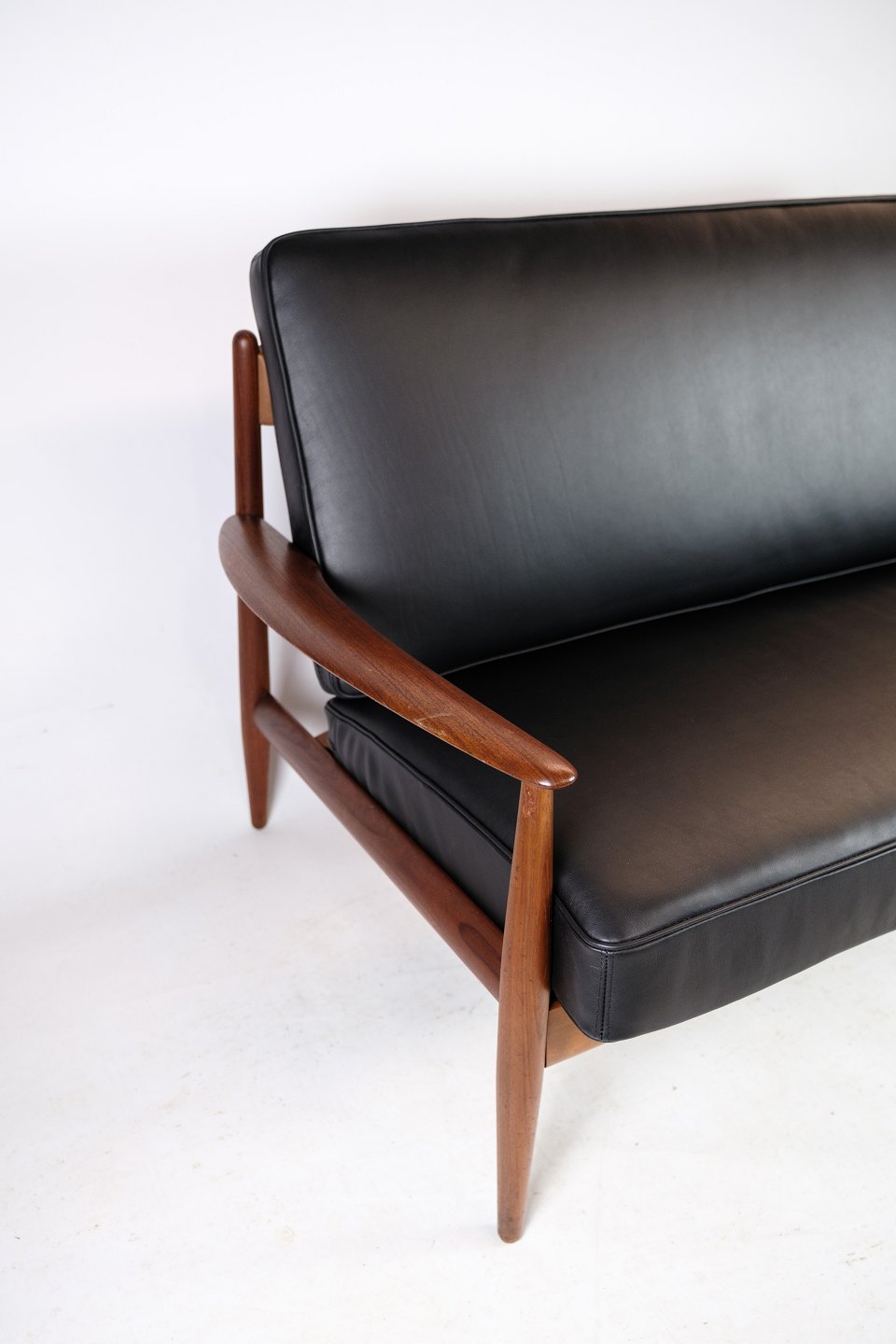 Please contact us for price informationThis 2-seater sofa from around the 1960s is a rare beauty designed by Grete Jalk and manufactured by France & Søn in Denmark. It is made of beautiful teak wood and has newly upholstered cushions in elegant leather of the finest quality. The teak frame of the sofa has been refurbished so that it is in excellent condition and is ready to adorn your home.