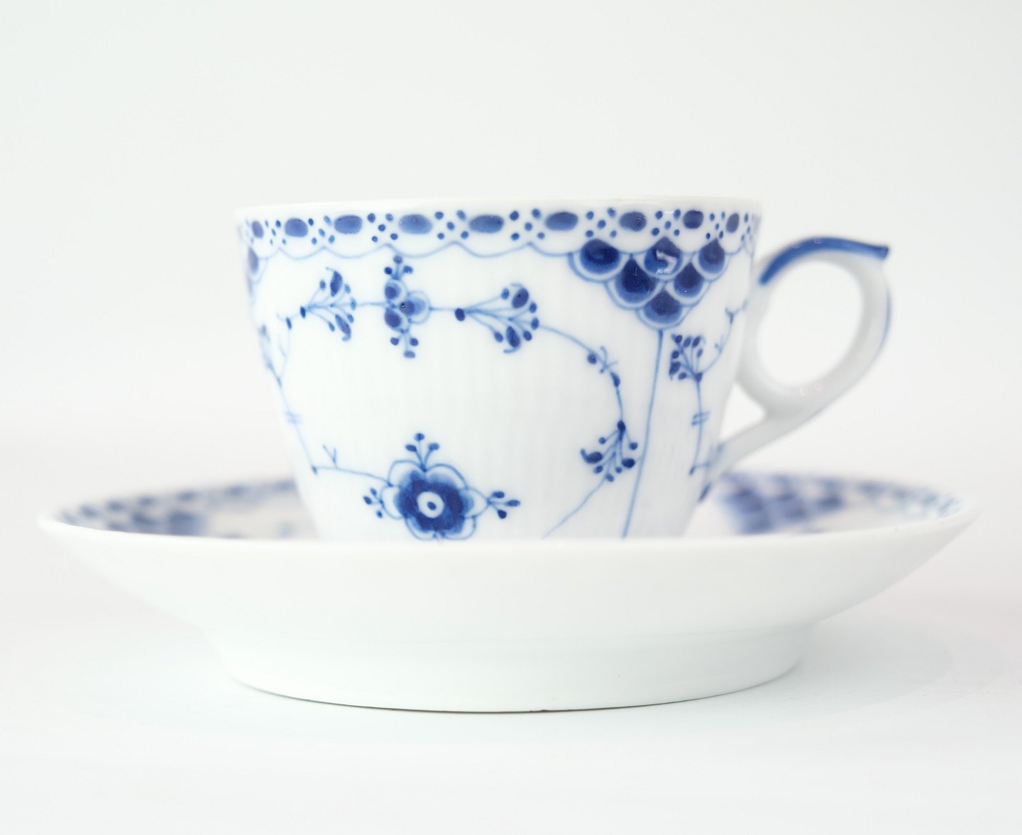 Mussel-painted half-blond cup with saucer from a royal porcelain factory.