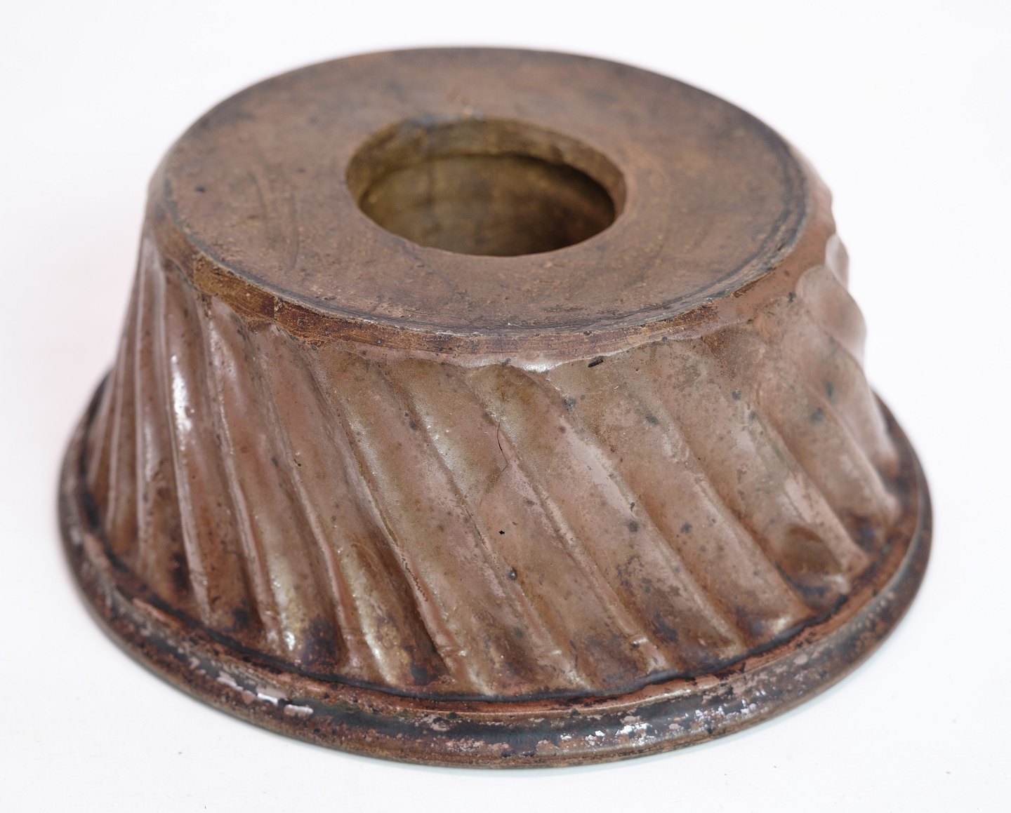 Earthenware pudding molds in brownish colors from around the 1930s.