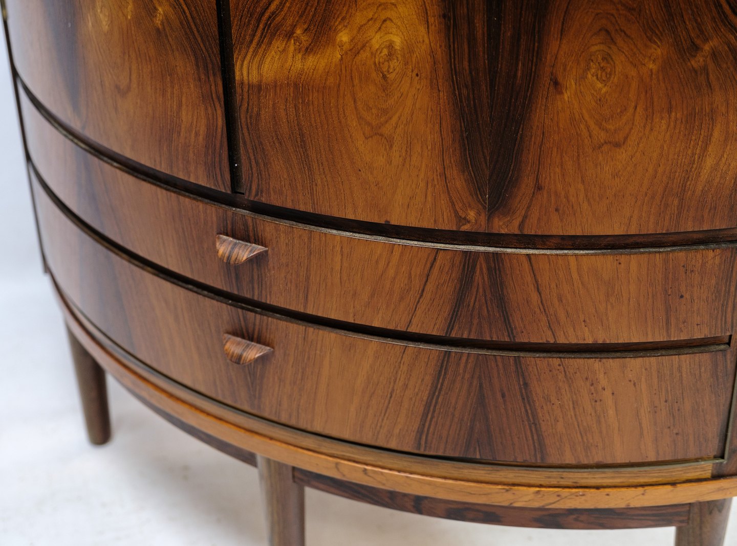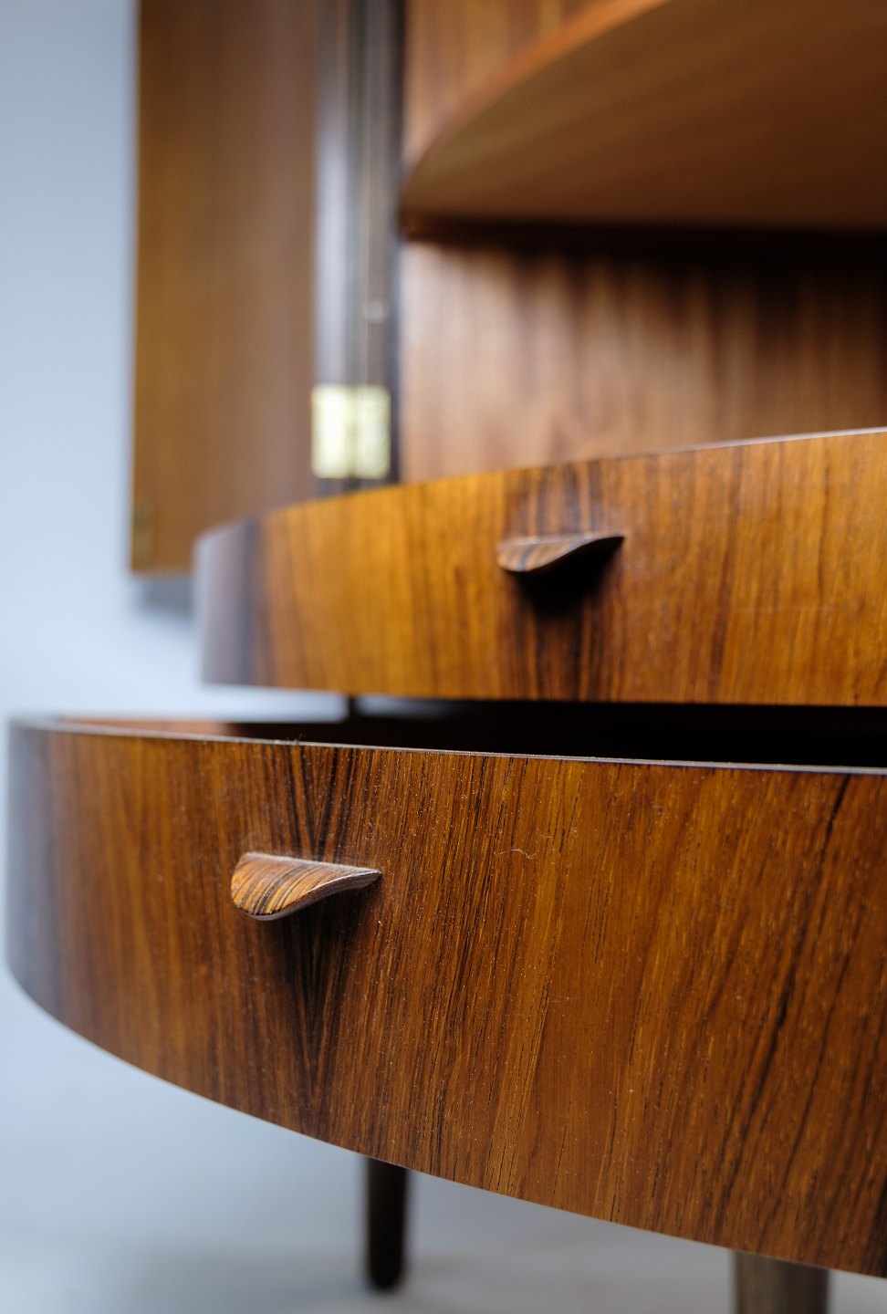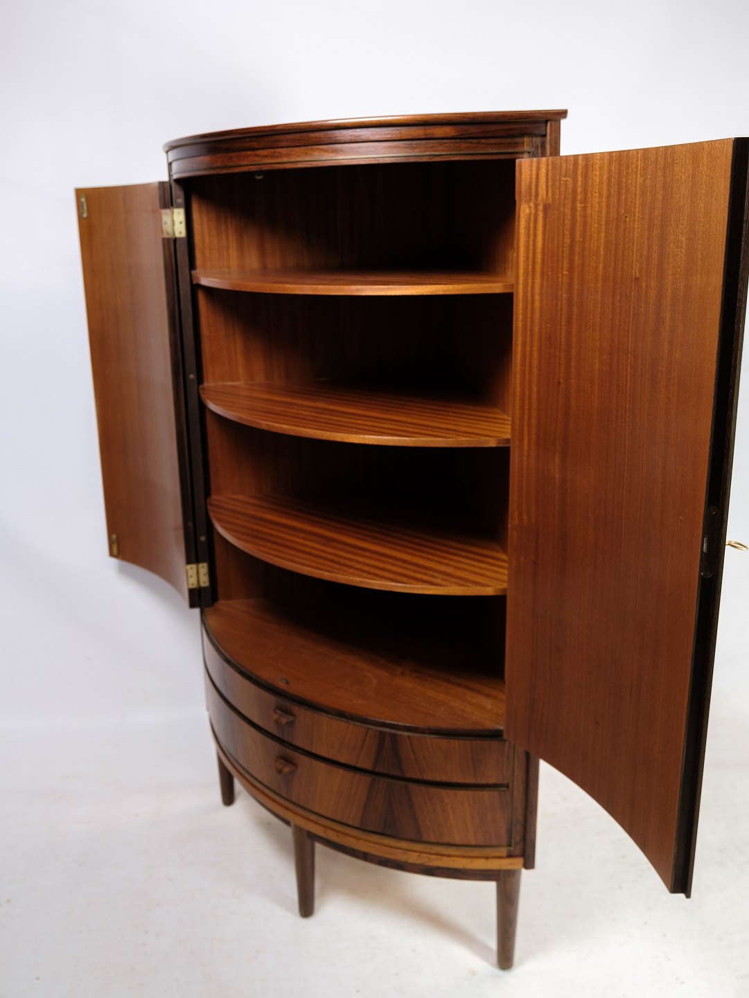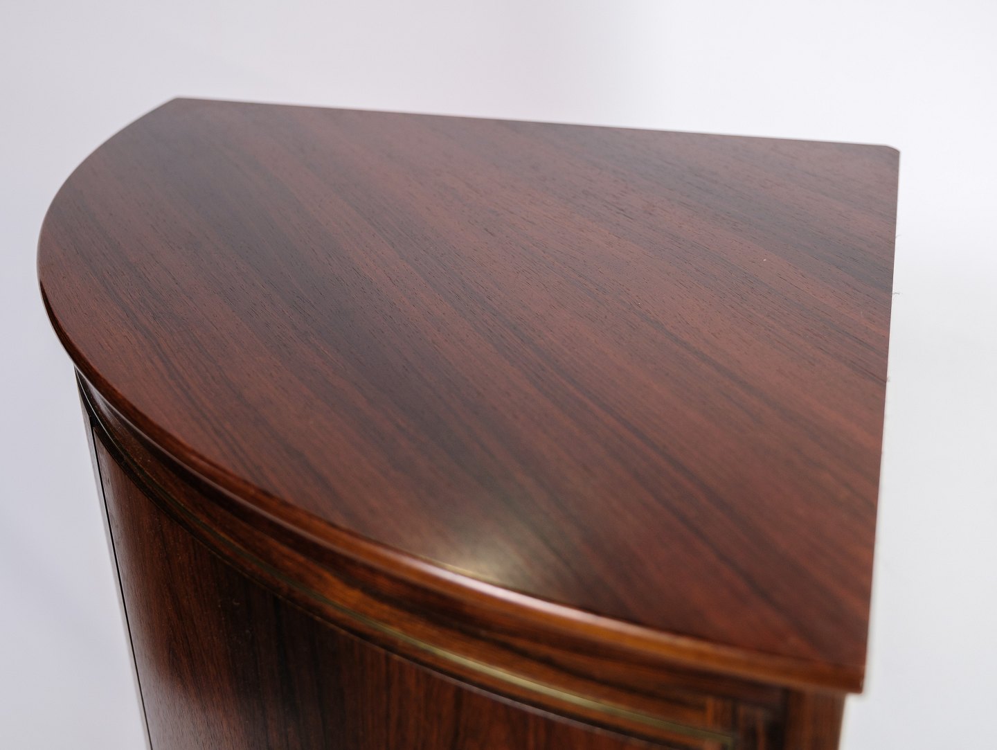 This rosewood corner cabinet from around the 1960s is a beautiful example of Danish furniture craftsmanship from the mid-20th century. The cabinet is designed with care and attention to detail and exudes elegance and timeless style.