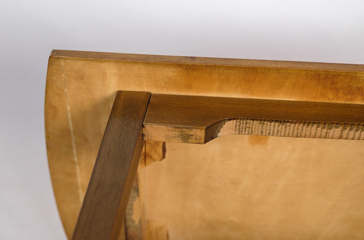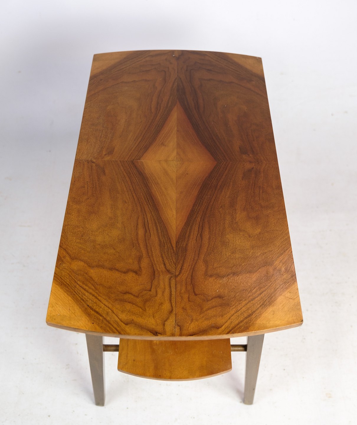 Side table in walnut wood with a nice structure on the top, as well as a shelf from around the 1960s.