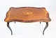 Antique rococo style coffee table with stained wood legs with brass decoration and surface in rosewood with intarsia from around the 1930s.