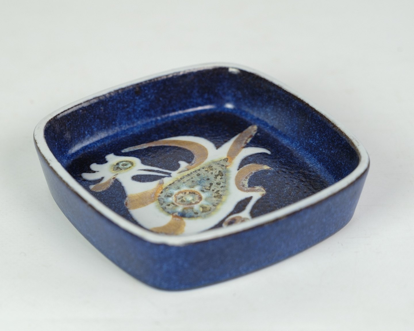 SoldSquare dish Aluminia art faience by Nils Thorsson no. 708 / 2882 with bird motif.