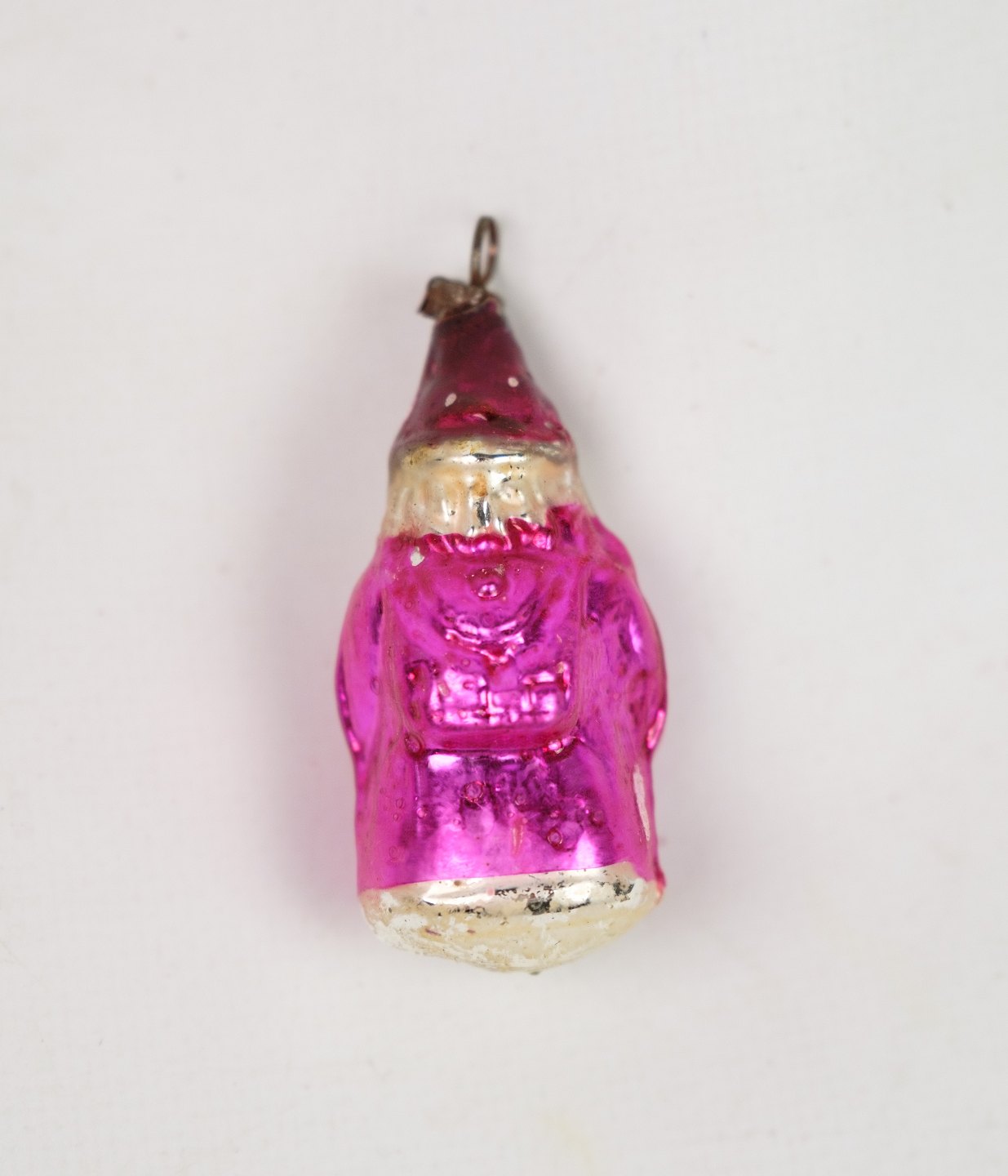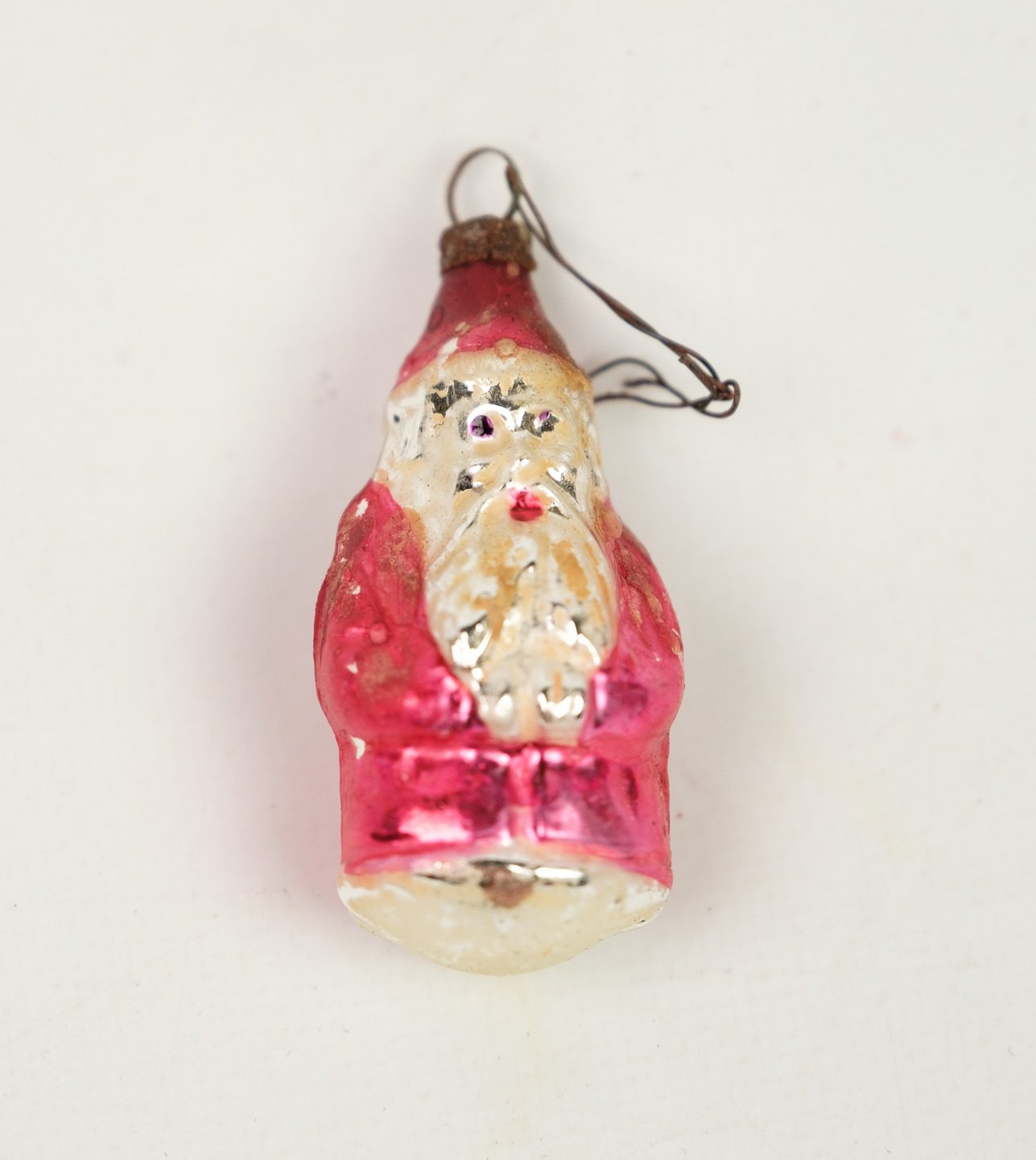 SoldAntique Christmas ornament of a pair of Santas in a red color from around the 1930s.