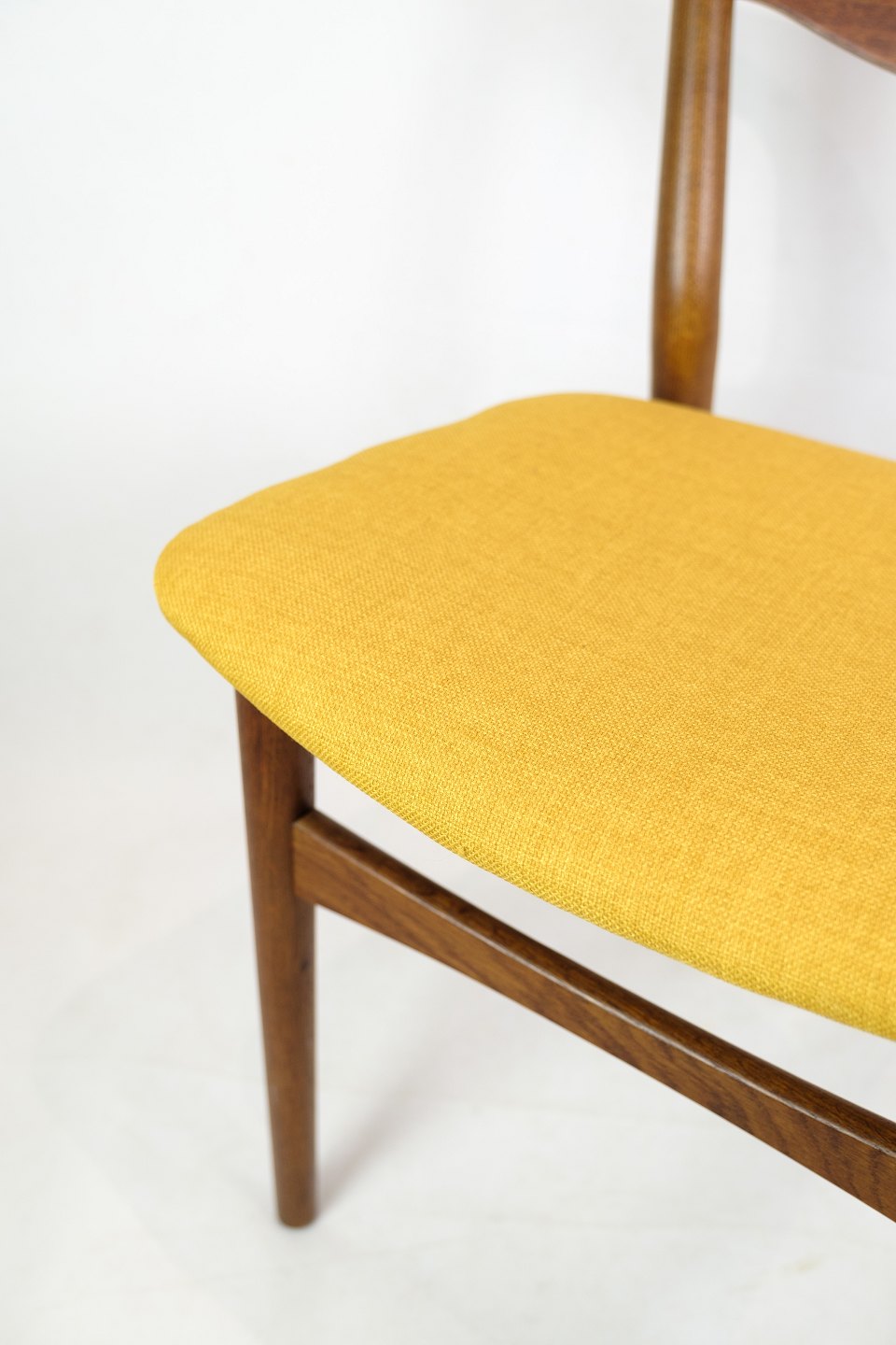 Sæt af 4, "model 42A" designet af Helge Sibast, Eg & teak, gult stof, 1953