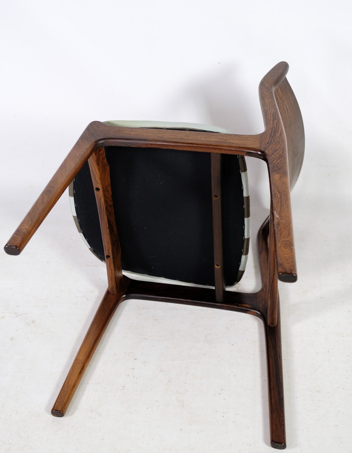 SoldSet of six dining chairs of Danish design in the wood type rosewood manufactured by Farsø møbelfabrik from around the 1960s. The chair is in very nice condition with striped fabric cover.