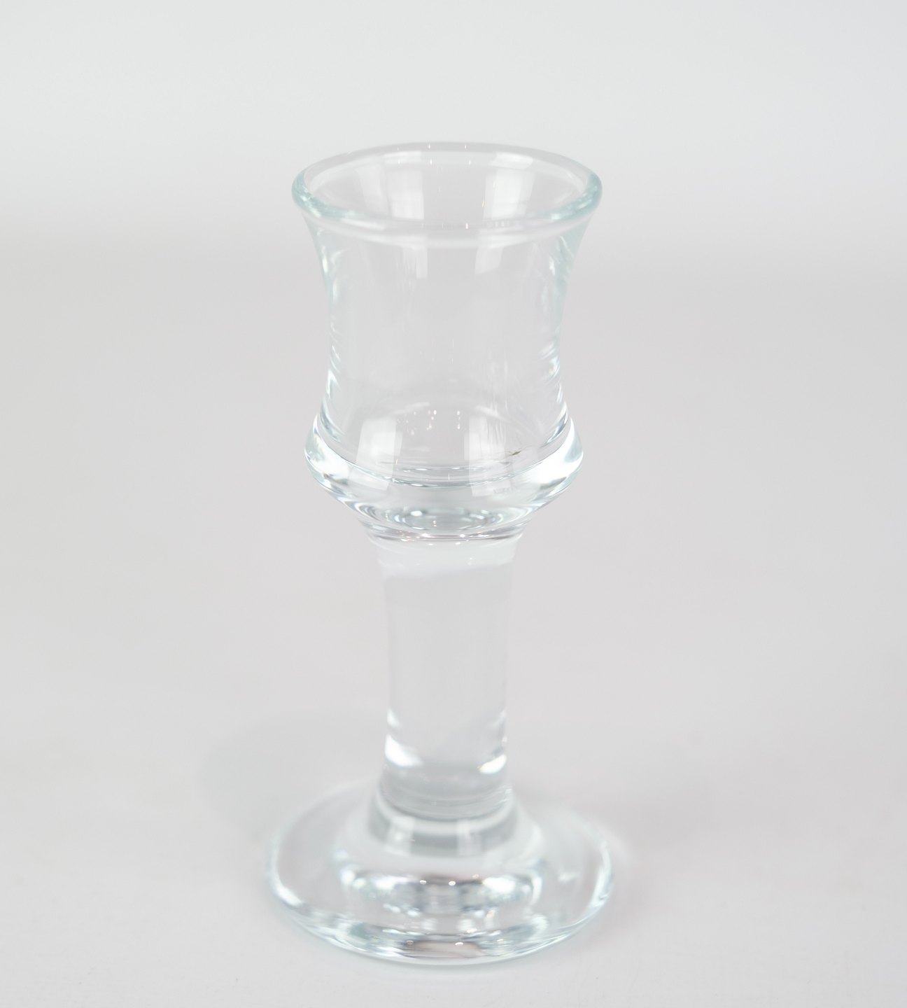 Tivoli glas fra Holmegaard med størrelse og brugt som snapse glas.