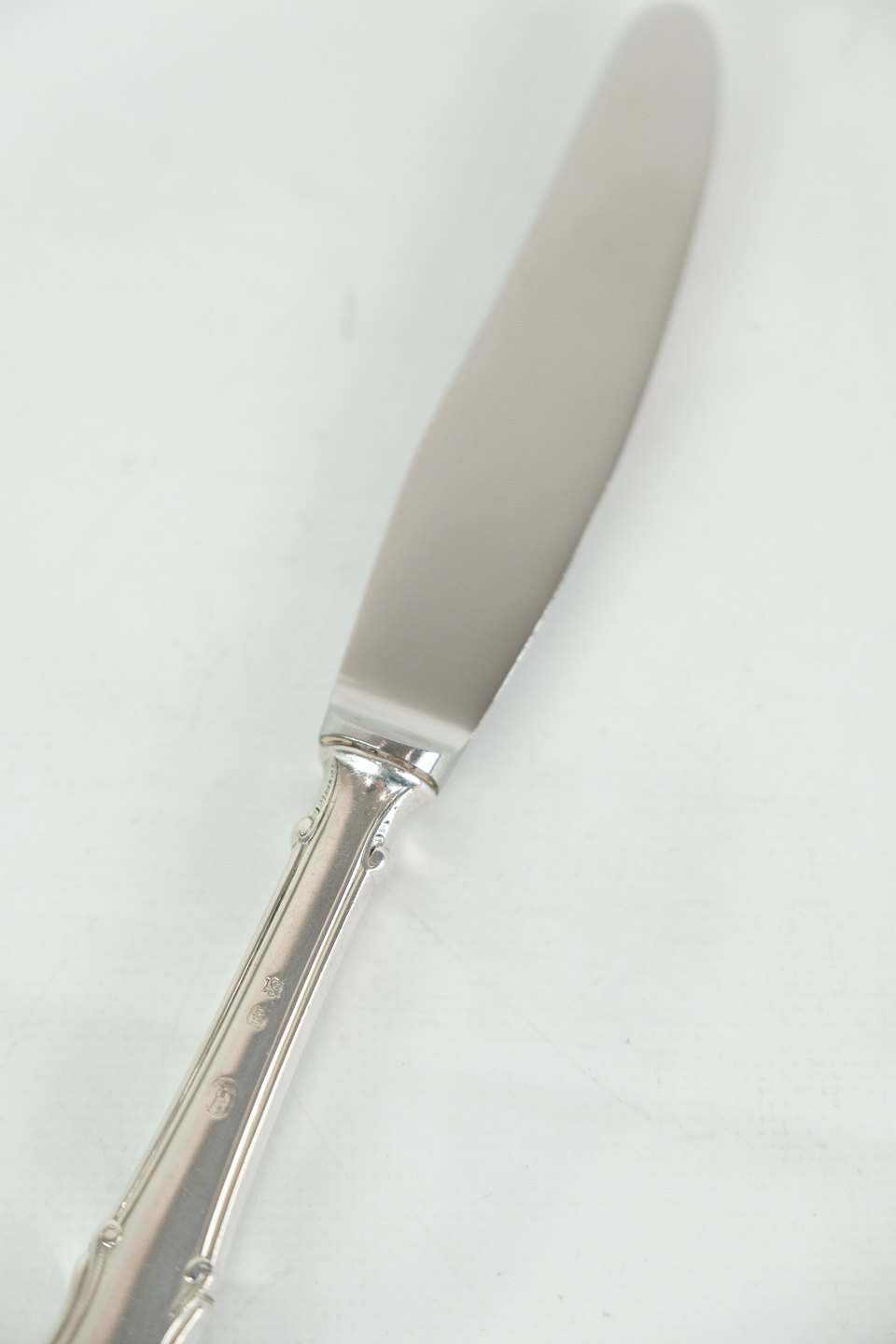 Middagsknive med saksisk mønstret lavet i sølv 830 sterling.