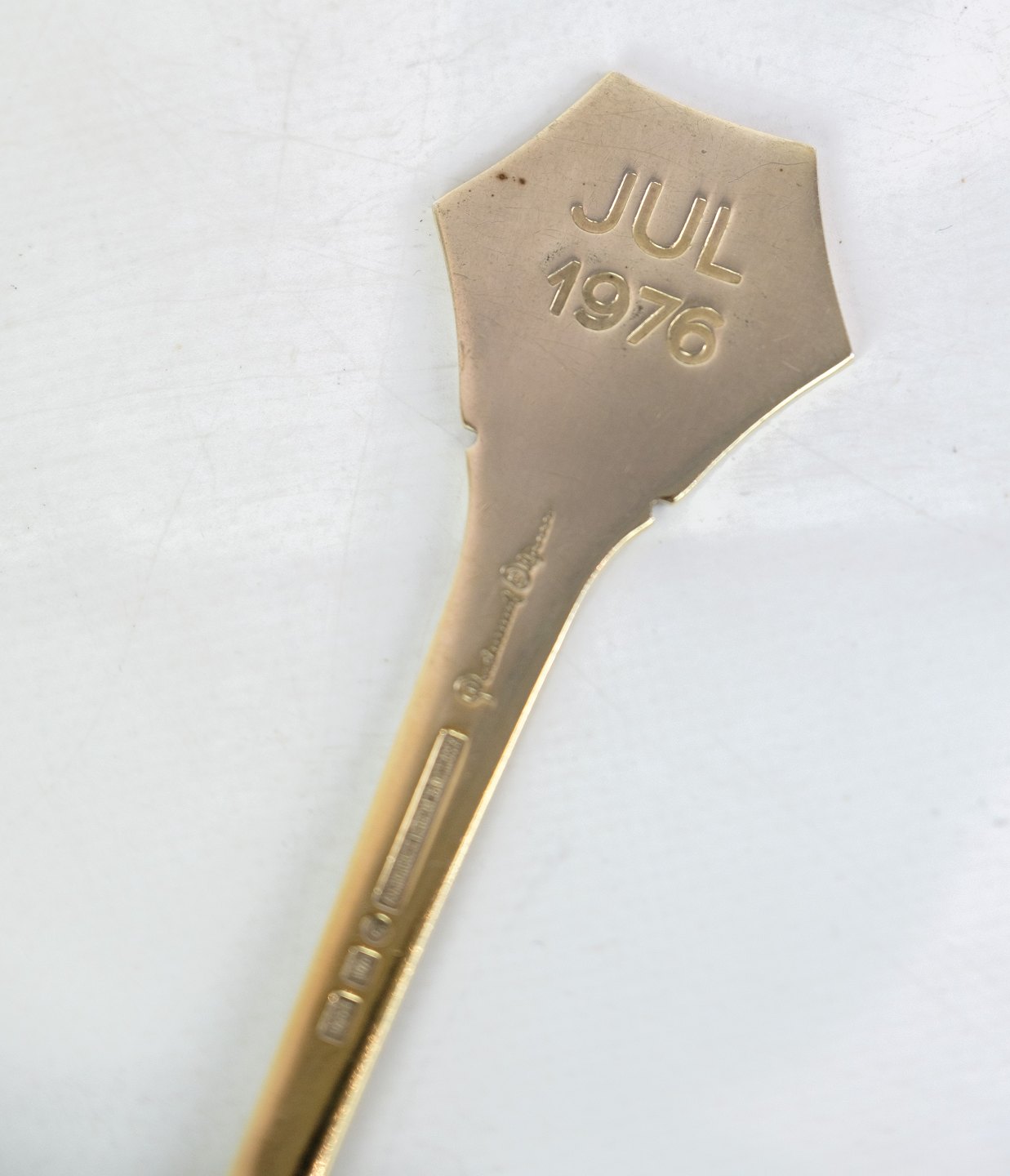 Christmas cutlery by Anton Michelsen is a set of cutlery made of gold-plated sterling silver with an enamel motif. The Christmas spoon 1976 "Snekrystal" is a specific design, drawn by Gudmund Olsen, which was produced by Anton Michelsen. Anton Michelsen was a Danish jeweler and jewelry manufacturer founded in 1841 and known for its high quality and unique designs.