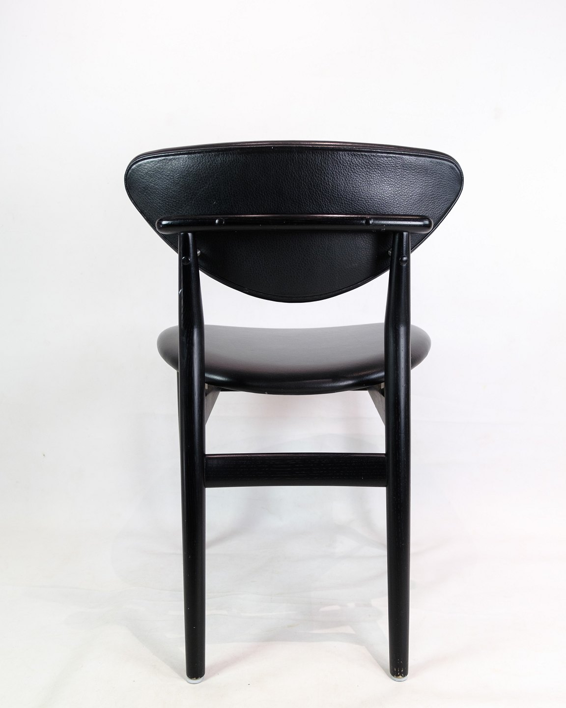 Model 108 Stol, et mesterværk af møbeldesign skabt af Finn Juhl, udført i sortmalet egetræ og betrukket med sort Elegance læder af den højeste kvalitet fra House of Finn Juhl.