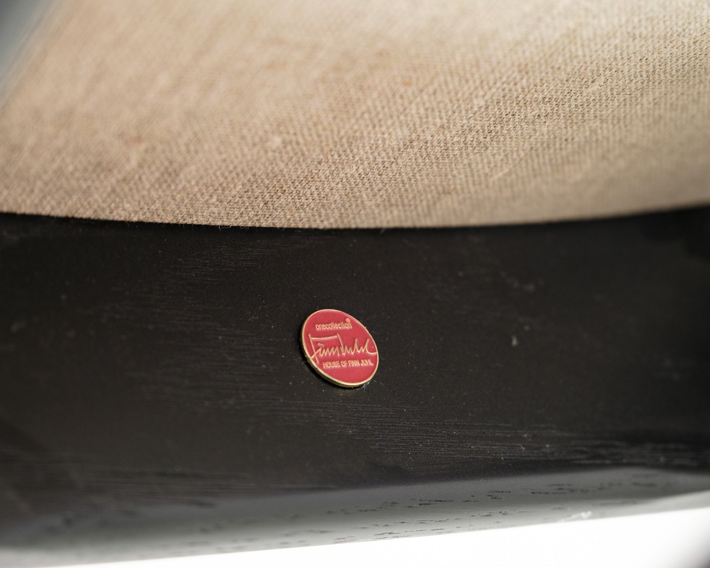 Finn Juhls unikke designfilosofi, der fokuserer på at adskille det bærende fra det bårne og skabe rum og mellemrum, er her fuldt ud realiseret. Denne smukke stol fremstår både polstret og komfortabel, samtidig med at den bevare et let og luftigt udtryk.