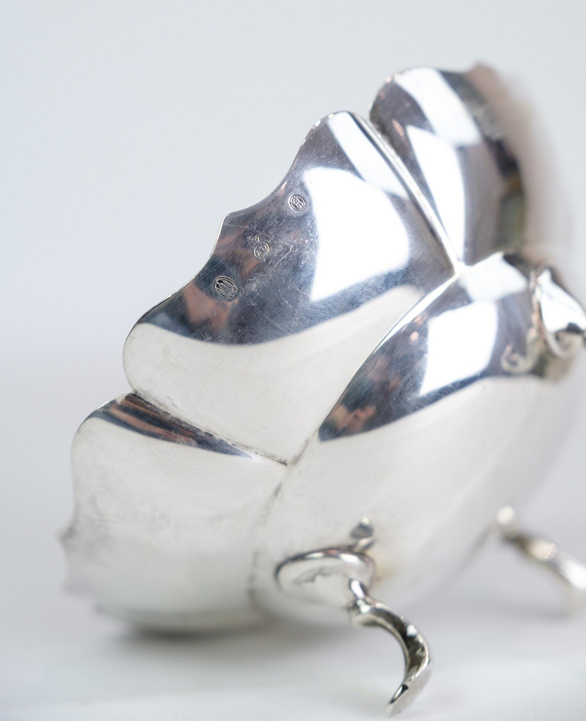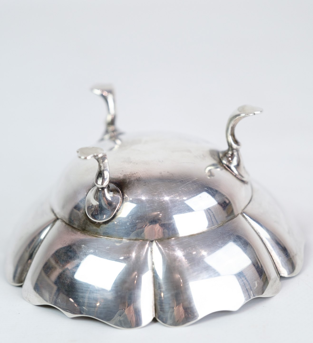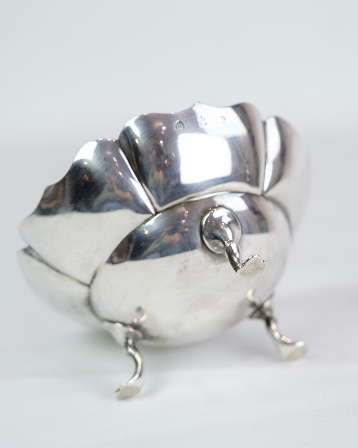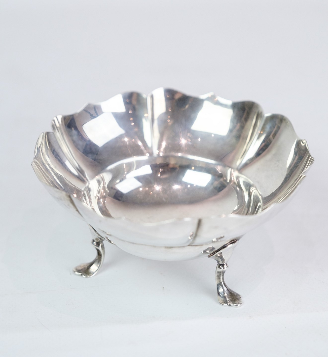 Lille skål på 3 føder af tretårnet sølv fra 1915. Stemplet A.D