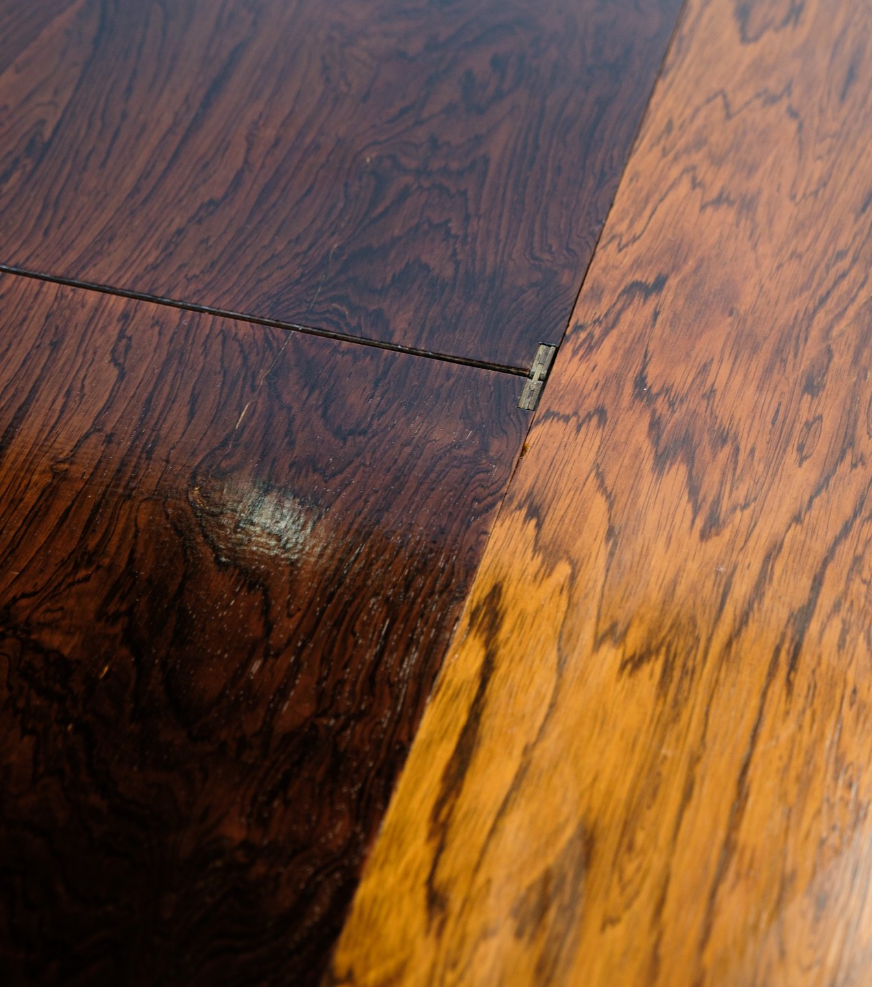 The table is extendable, making it perfect for larger gatherings or when you need extra space. The tops are easy to remove, making cleaning and maintenance easy. The table's design is both functional and stylish, with clean lines and simple shapes that are characteristic of the Art Deco style.