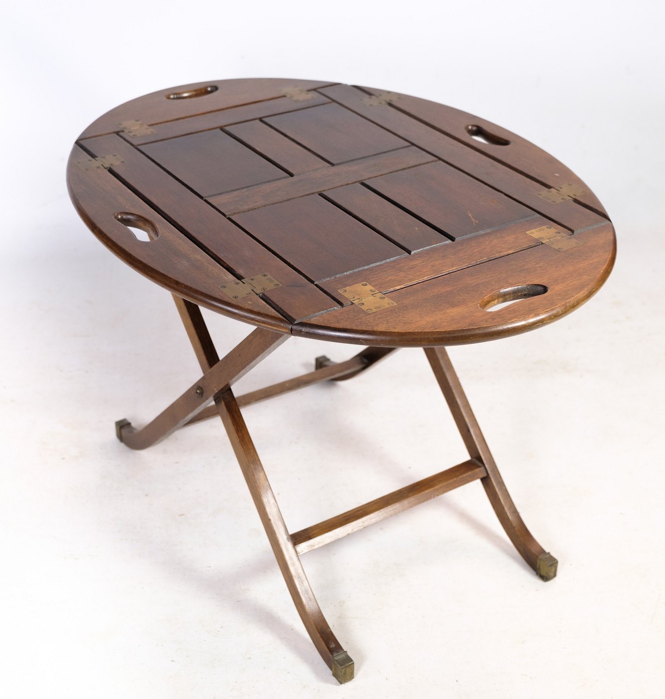 Sidebord / Sidebord i Mahogni med messing beslag fra omkring 1950'erne. Står i meget fin brugt stand.