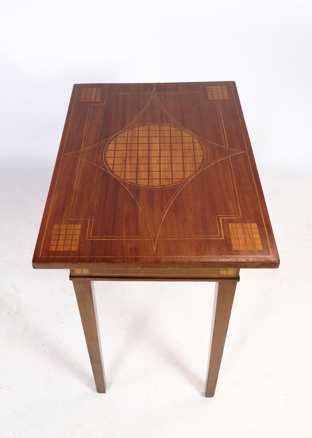 Mahogany side table with decoration in the form of walnut marquetry on both table top and legs from around the 1920s.