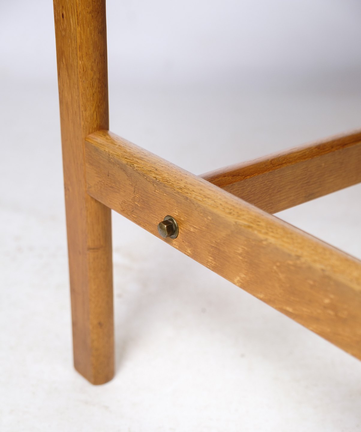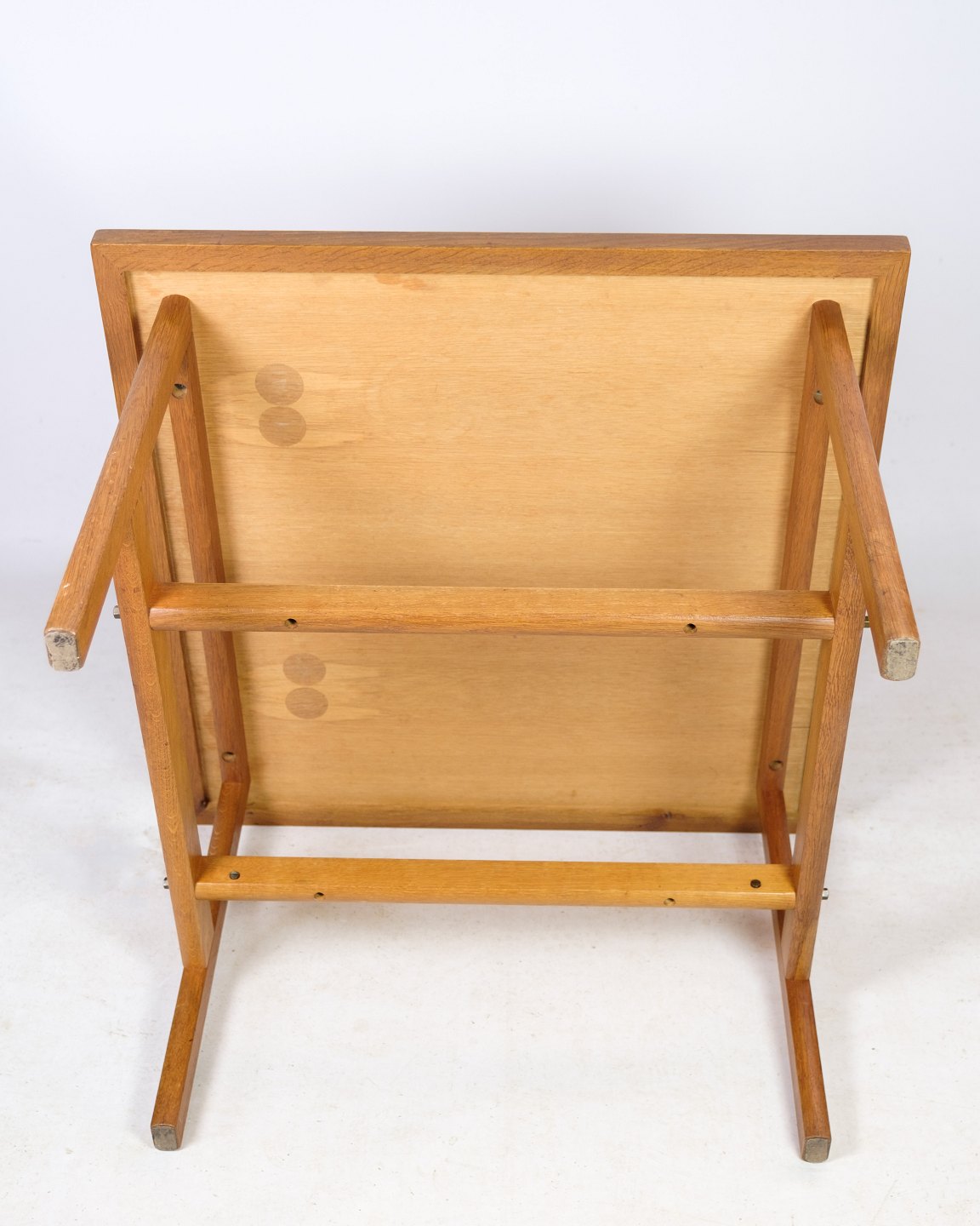 Square coffee table of veneered oak, designed by Børge Mogensen, manufactured by FDB Møbler from around the 1960s.