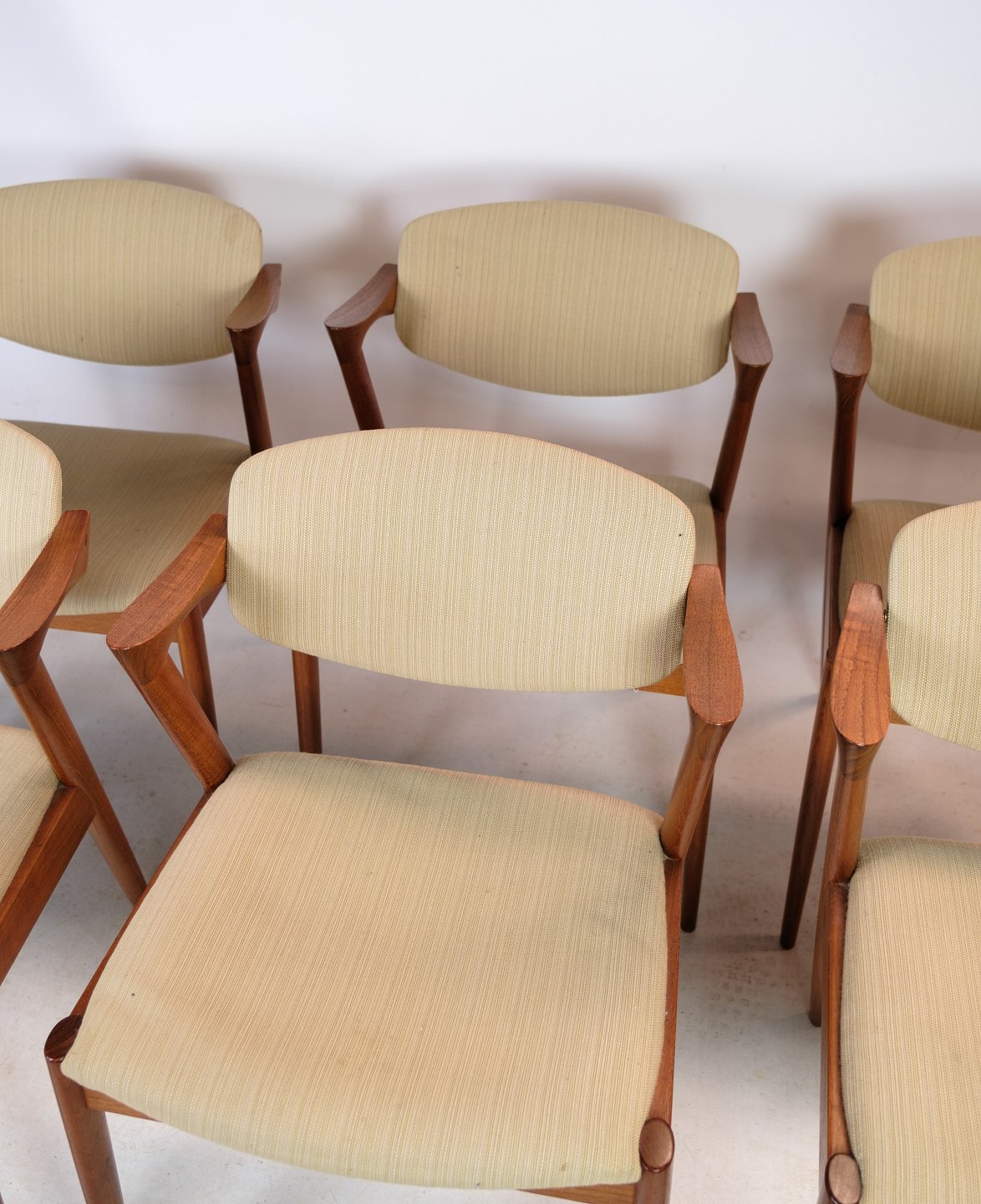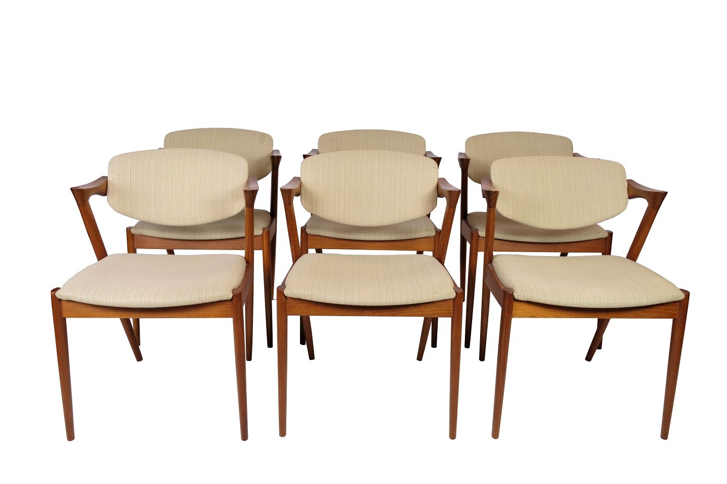 SoldThis set of 6 dining chairs is truly an iconic example of the timeless elegance that characterizes mid-20th century Danish furniture design. The chairs are model 42, designed by the renowned Danish designer Kai Kristiansen and manufactured by Schou Andersen in the 1960s.