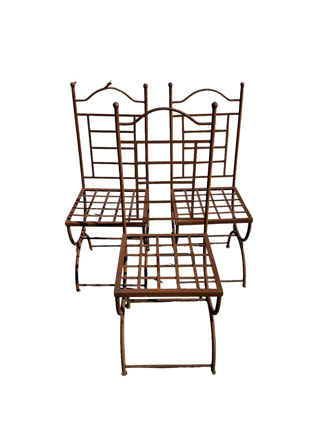A set of three French iron chairs from around the 1950s with fine decoration.