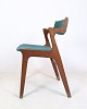Set of four dining chairs in teak and light blue fabric of Danish design and manufactured by Nova Møbelfabrik in the 1960s. The chairs are in nice used condition.