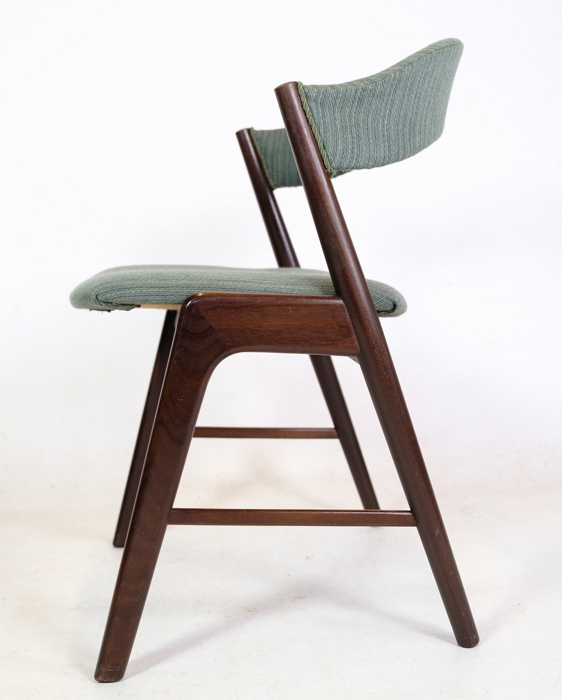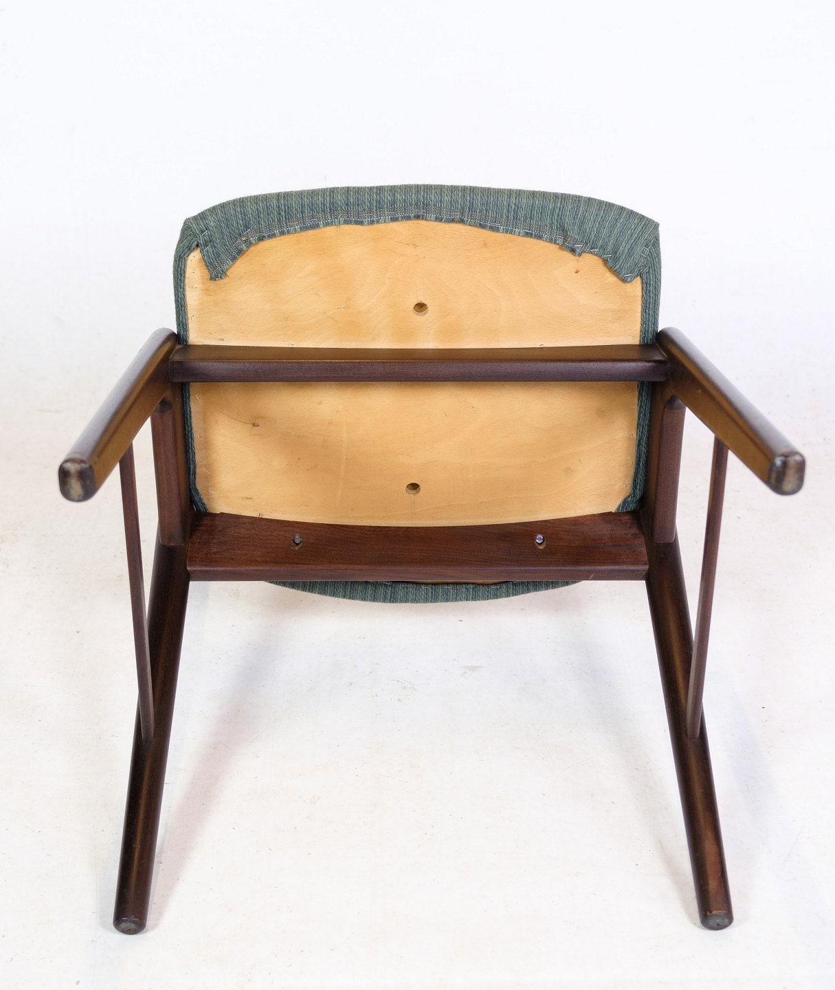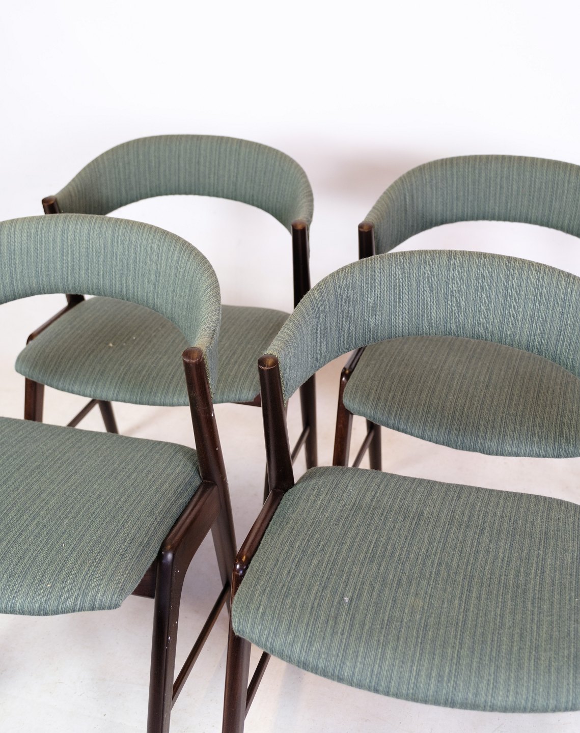 Sæt af 4 armstole i teaktræ, af dansk design fra omkring 1960'erne. Stolene står med flot blåt stof i meget fin stand.