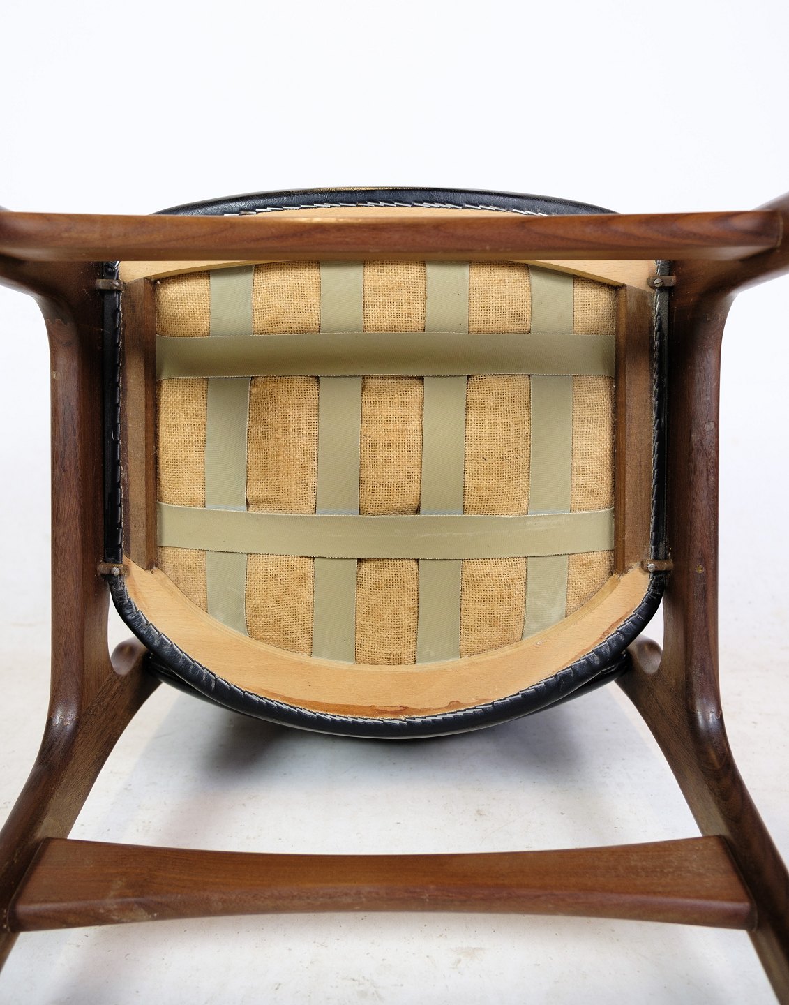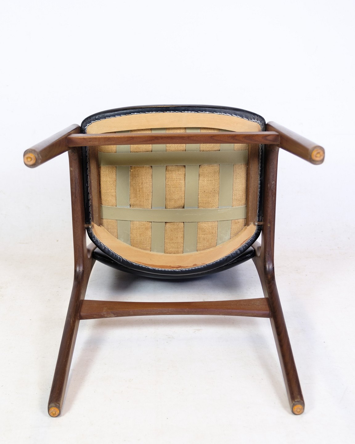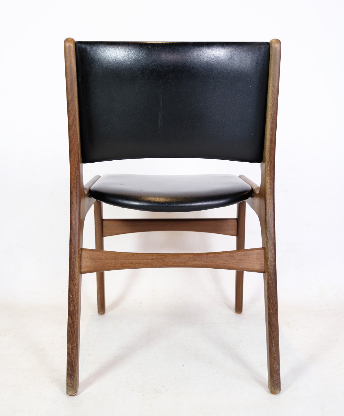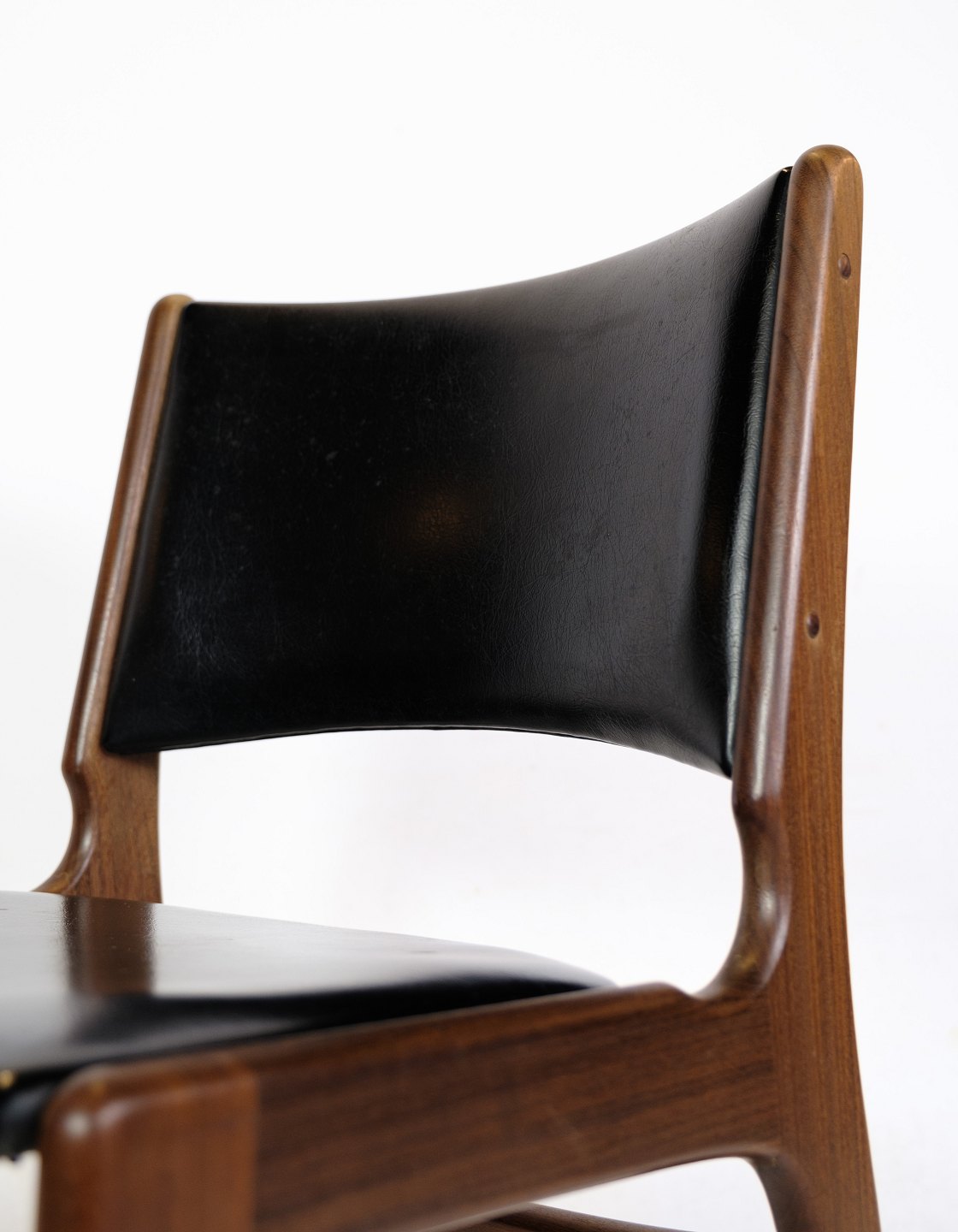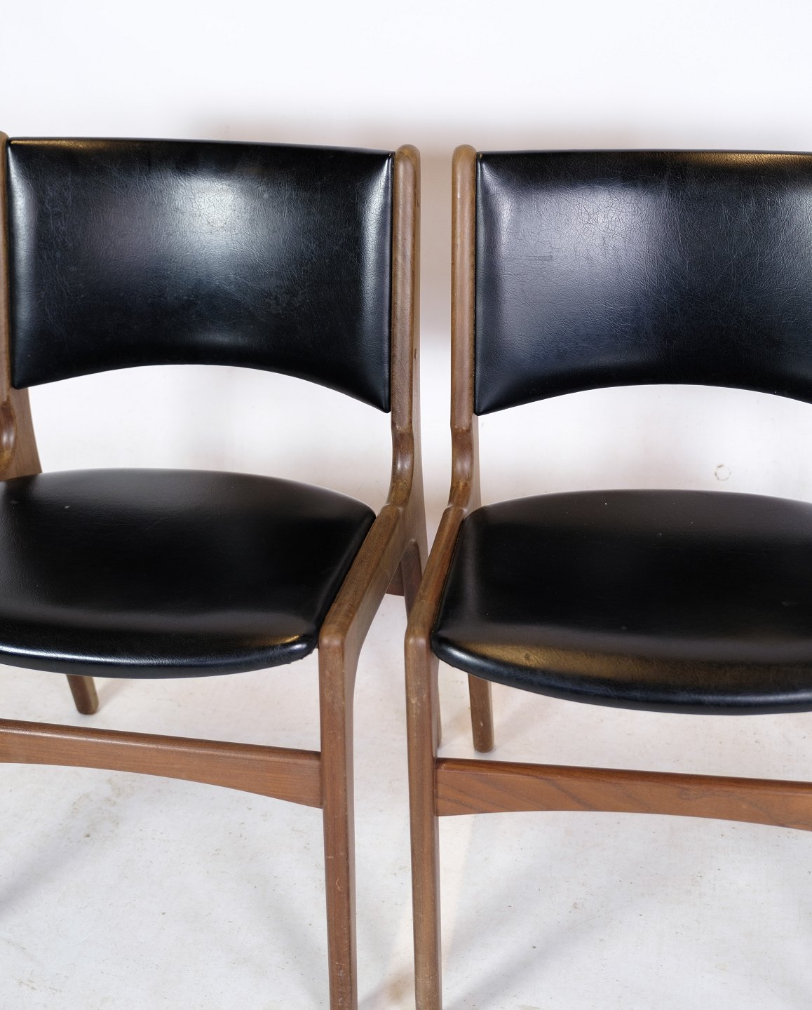 Sæt af 2 stole, designet af Erik Buch model 89 fremstillet af Anderstrup Møbelfabrik i teaktræ i sort læder omkring 1960'erne.
