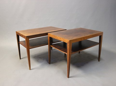 SolgtEt sæt af 2 natborde af dansk design i teaktræ med skuffe med håndtag fra omkring 1960'erne.