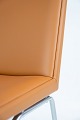 Loungestolen har en kombineret ryglæn og sæde, som kan polstres enten i stof eller læder, hvilket giver mulighed for forskellige designpræferencer og indretningsstile.