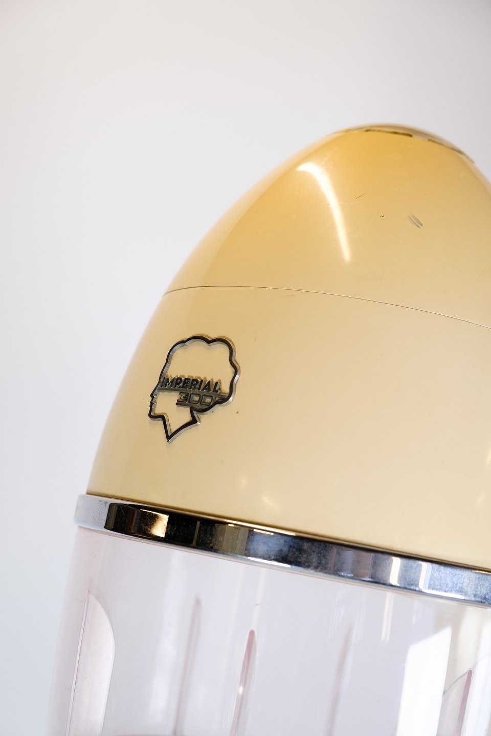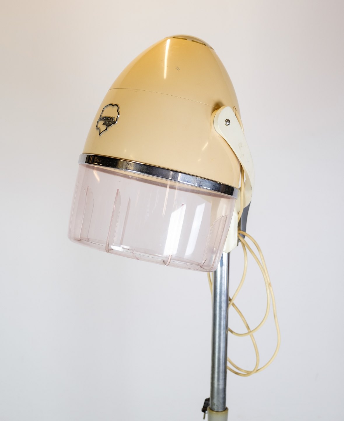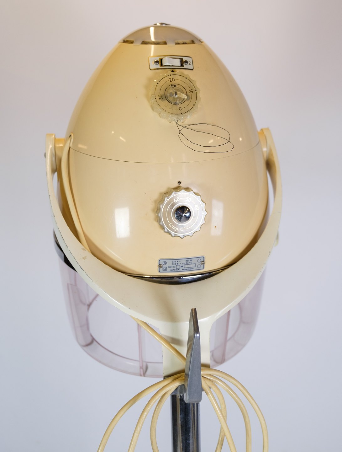 Ældre retro tørrehjelm på stativ på hjul, model Imperial fra perioden 1950'erne.