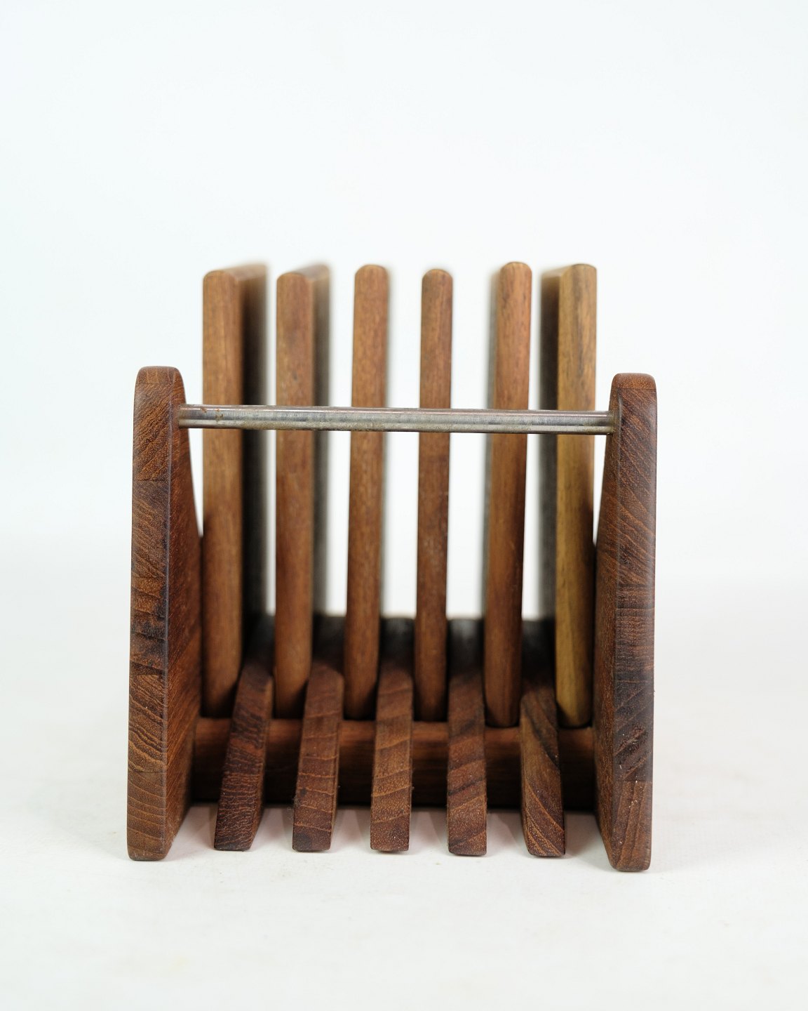 Set of six cutting boards with holders in teak wood by Trip Trap Denmark from around the 1960s.