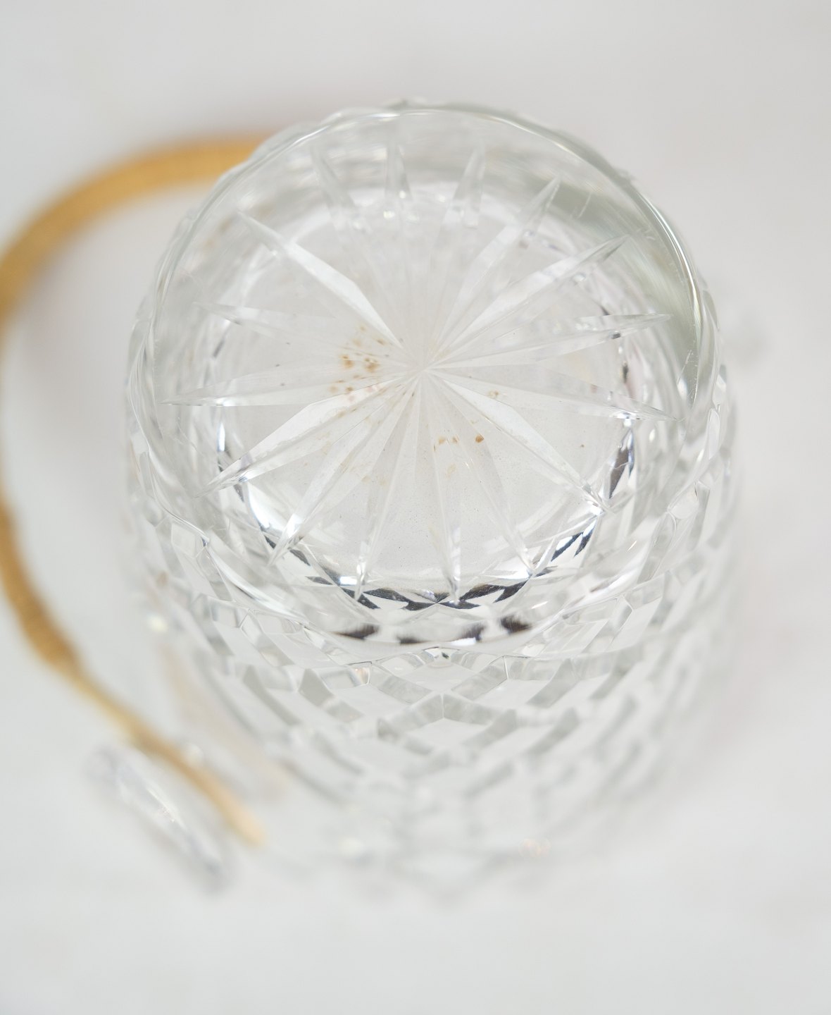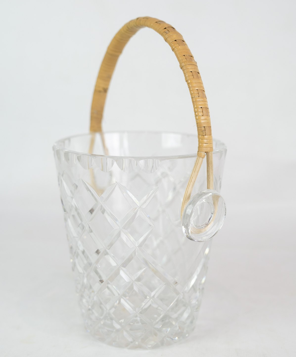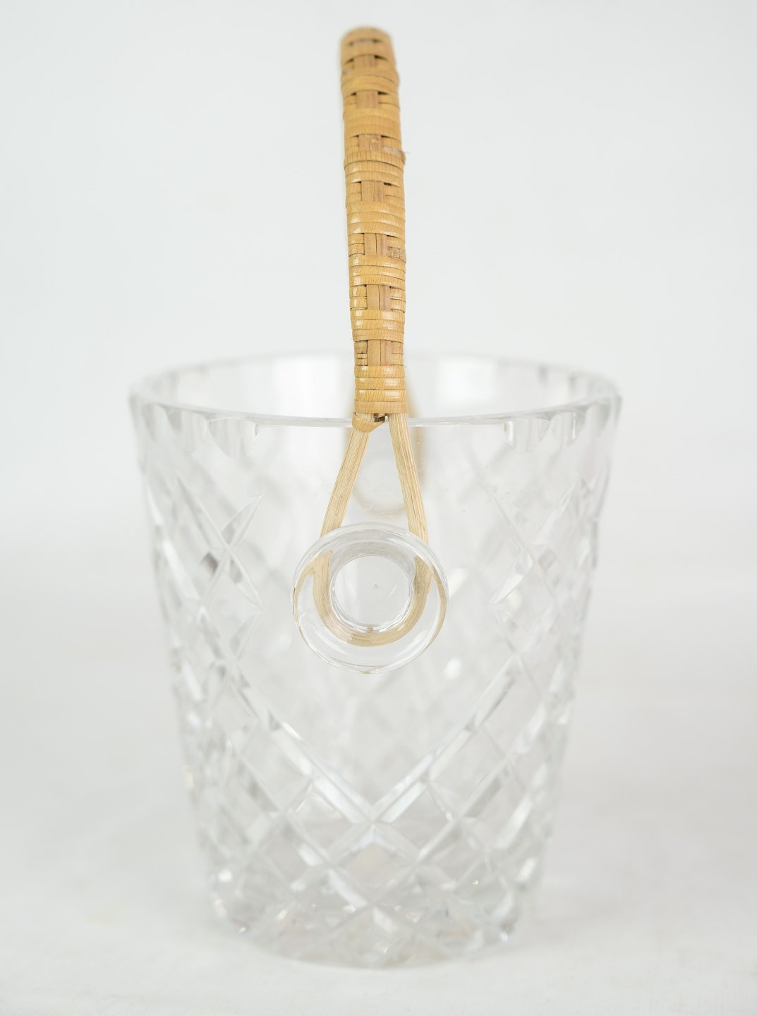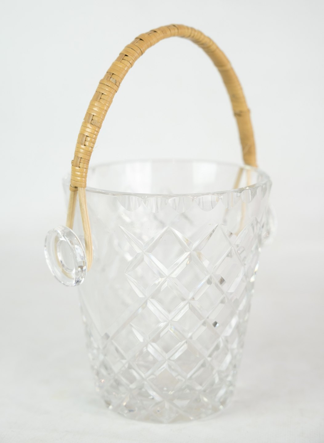 Crystal glass ice bucket with braided handle from around the 1930s.