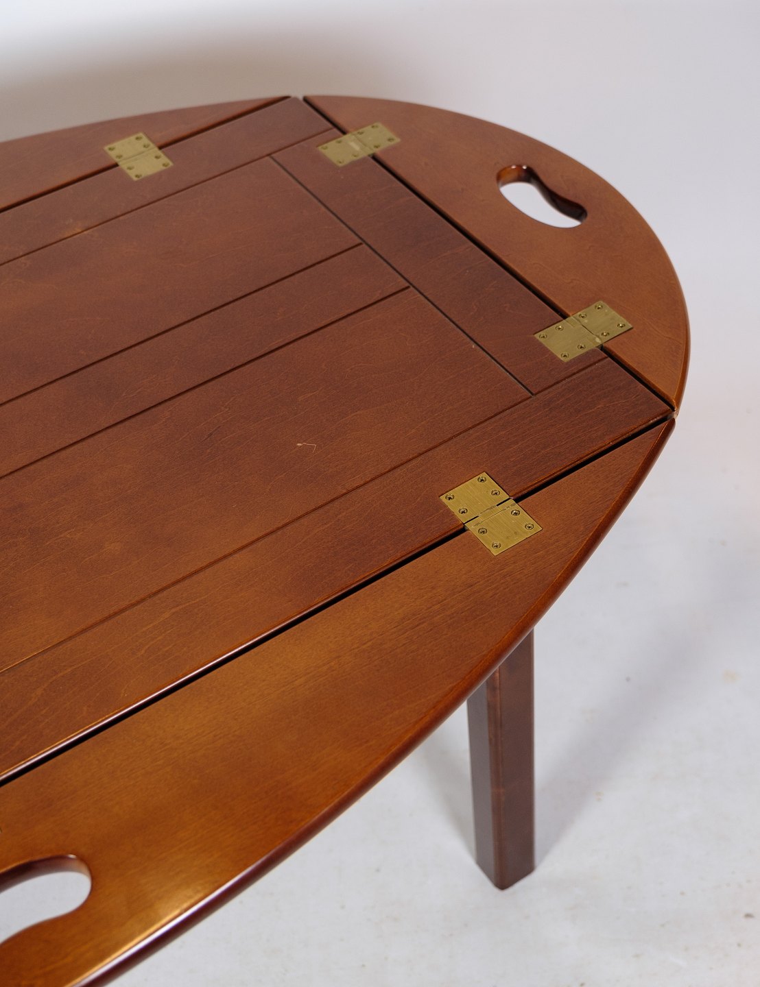 Butler sofa table in polished mahogany with brass fittings from around the 1940s.