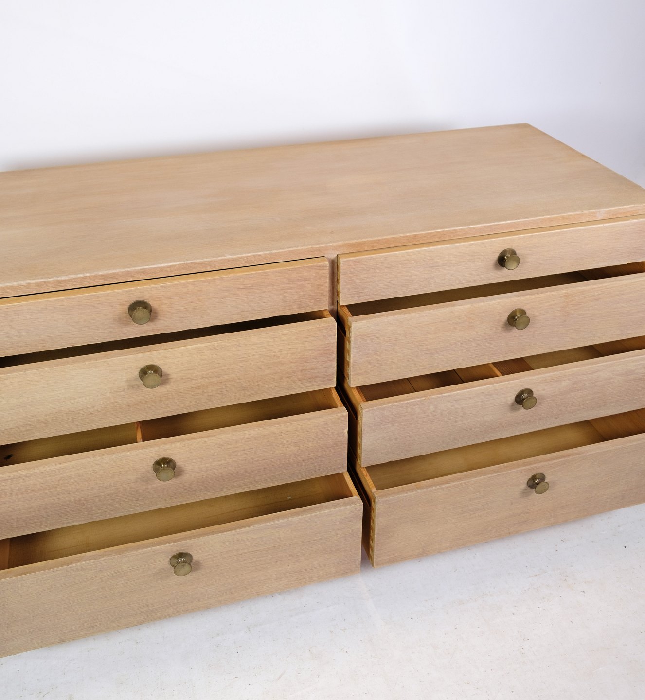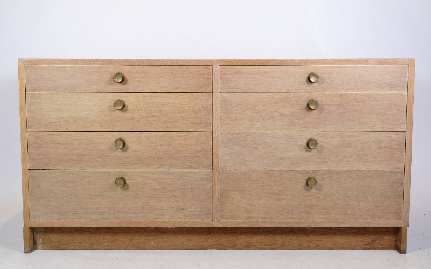 SolgtSkænk / Kommode, designet af Børge Mogensen af egetræ med 8 skuffer og messing greb fra omkring 1960'erne.