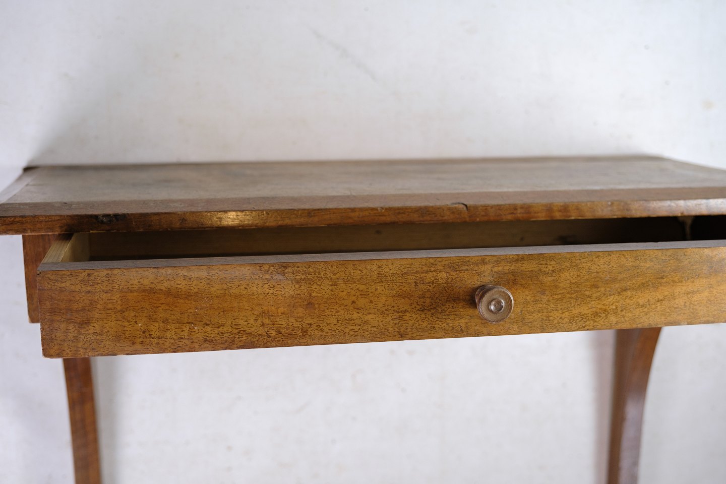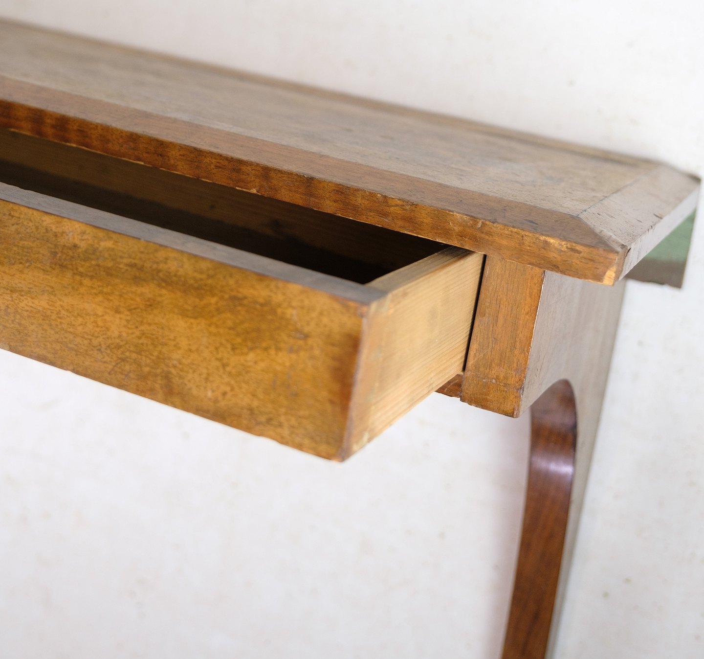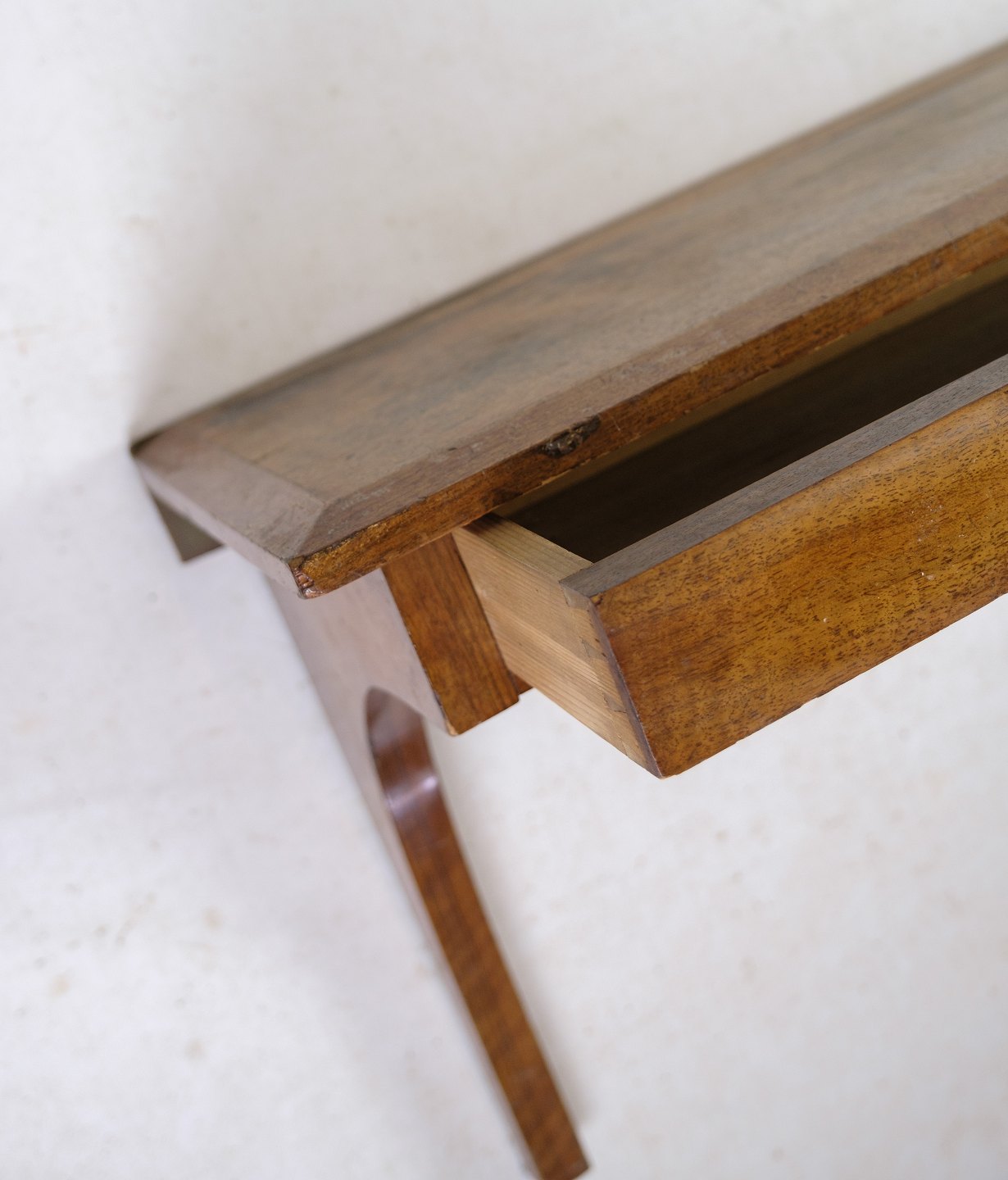 SoldSuspended wall console with drawer made of walnut from around the 1920s.
