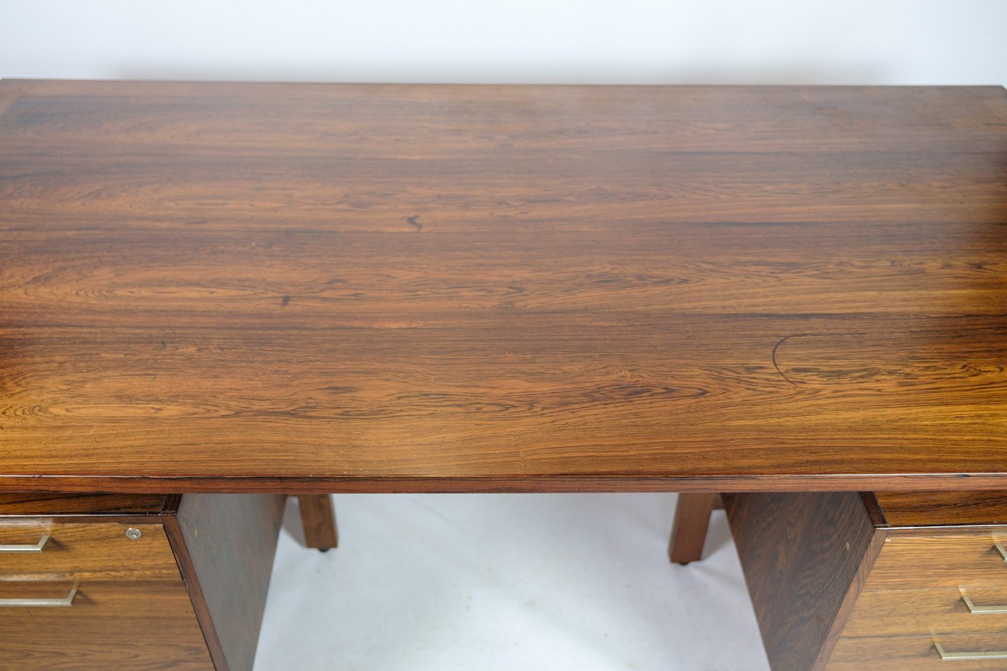 SolgtDette skrivebord af dansk design fra omkring 1960'erne er et smukt eksempel på ægte håndværk og elegance. Udført i palisandertræ udstråler det en tidløs skønhed og raffinement, der passer perfekt til enhver moderne eller vintageindretning.