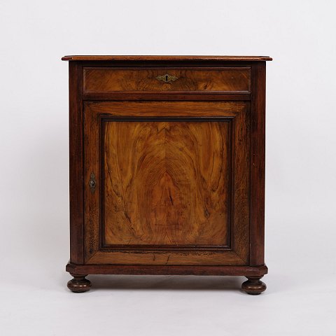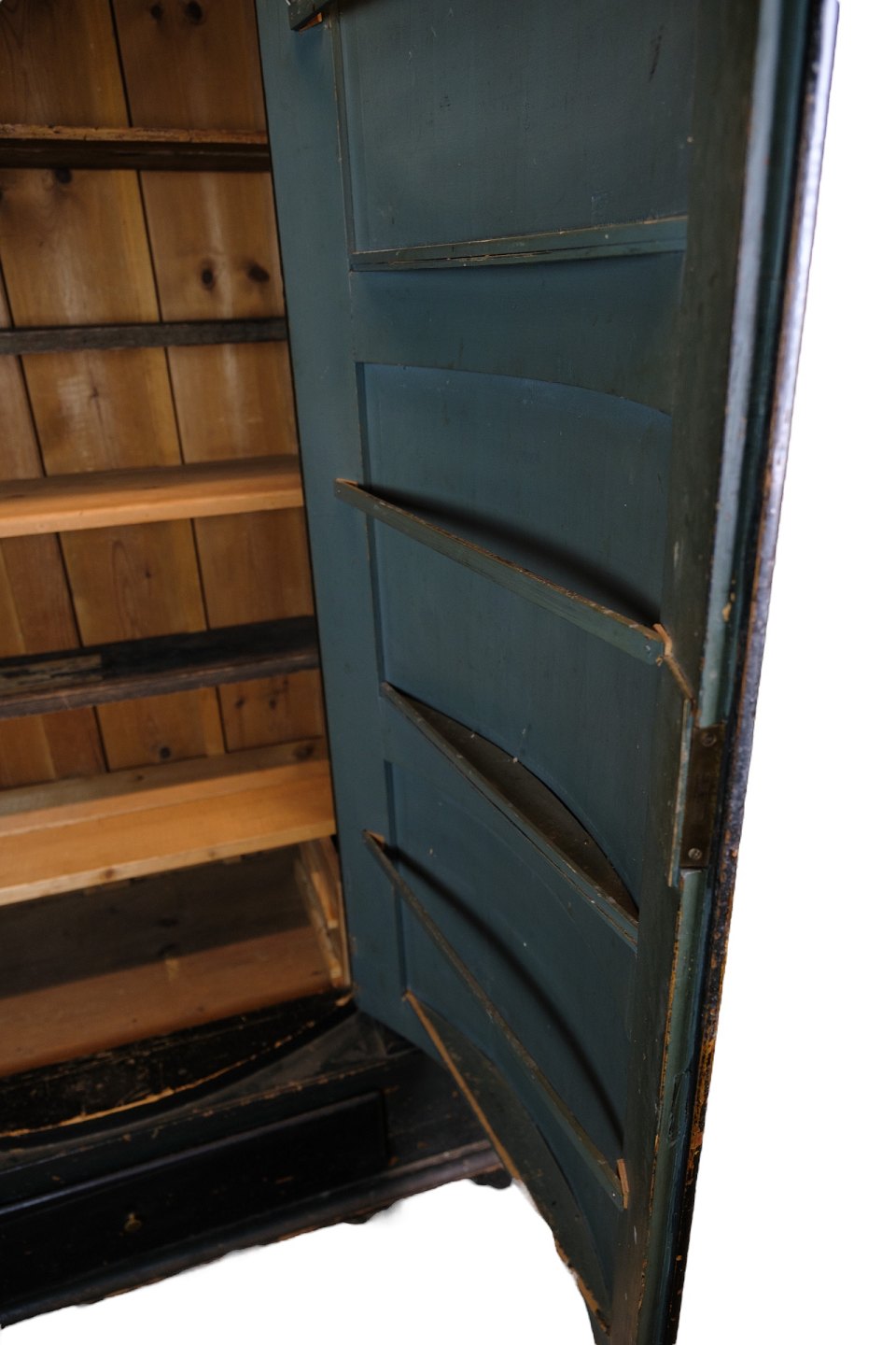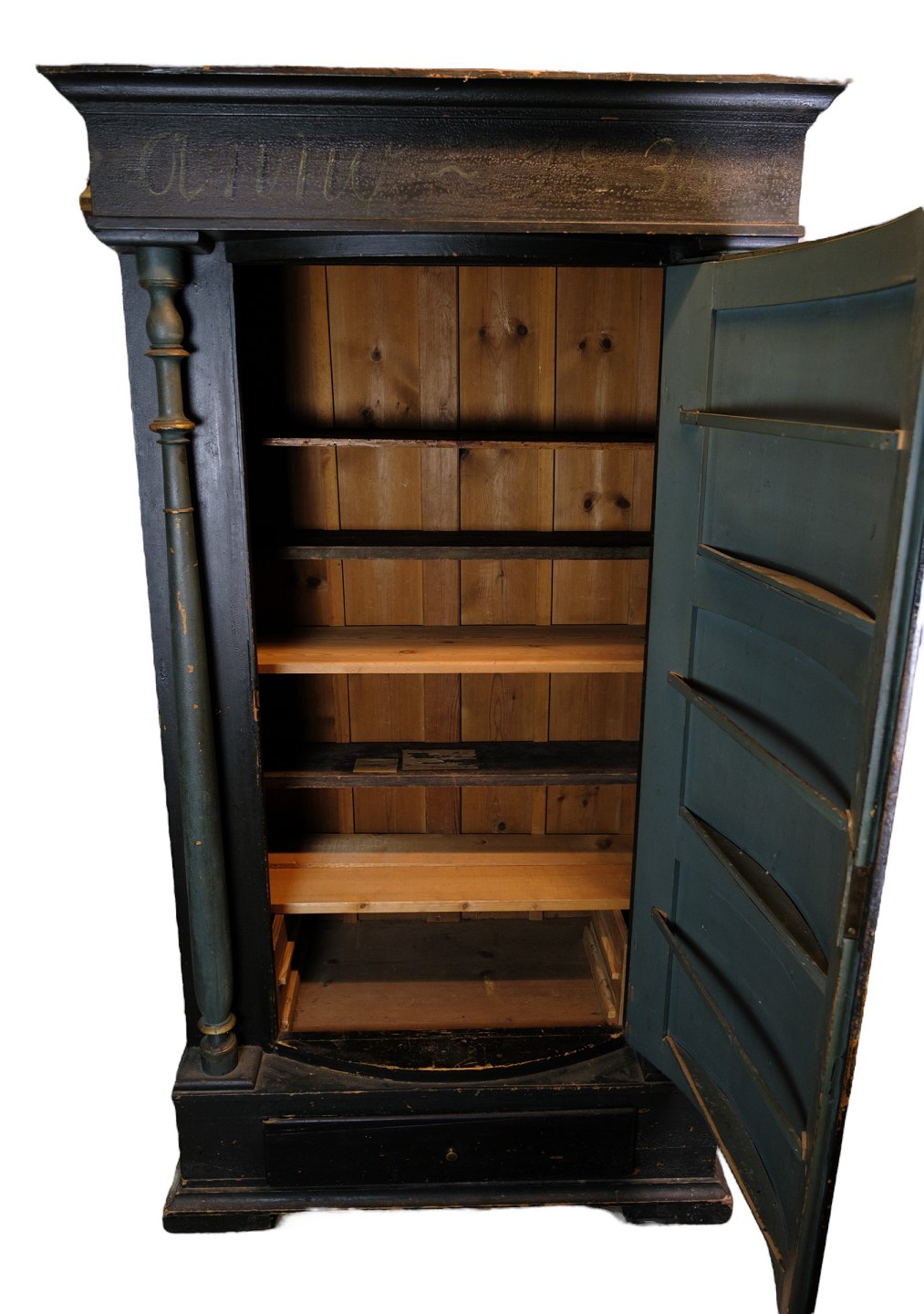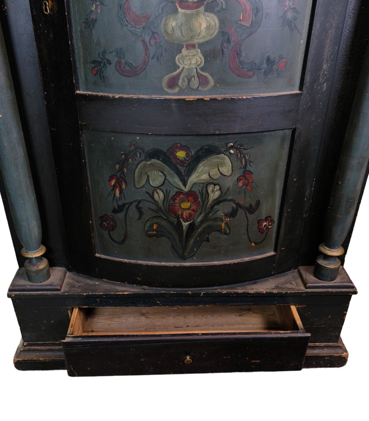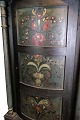 Painted Hedebo cabinet (Roskilde cabinet) with columns and floral decoration with door and interior shelves from the year 1836.